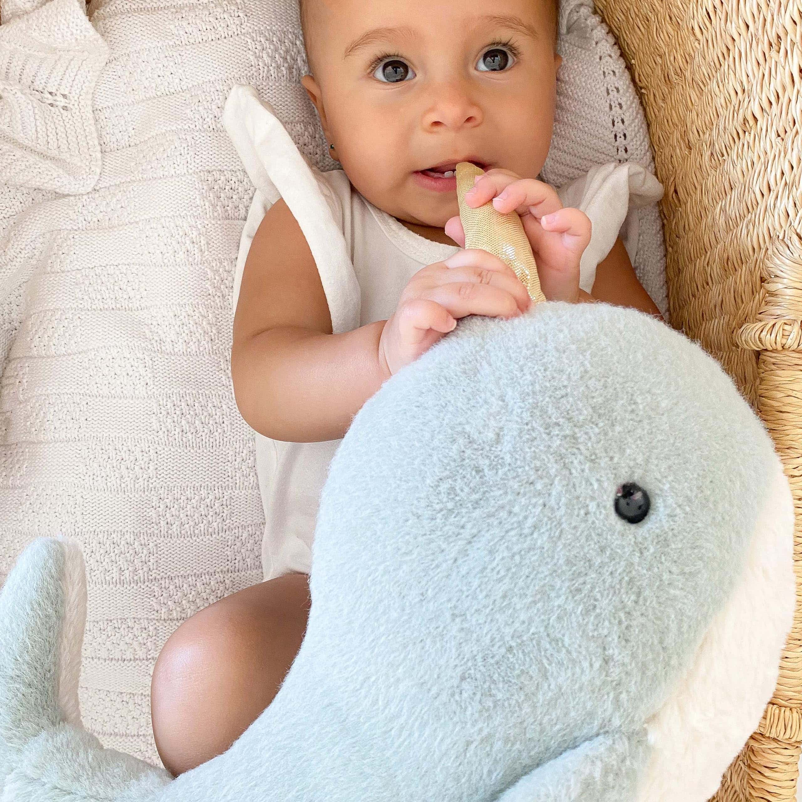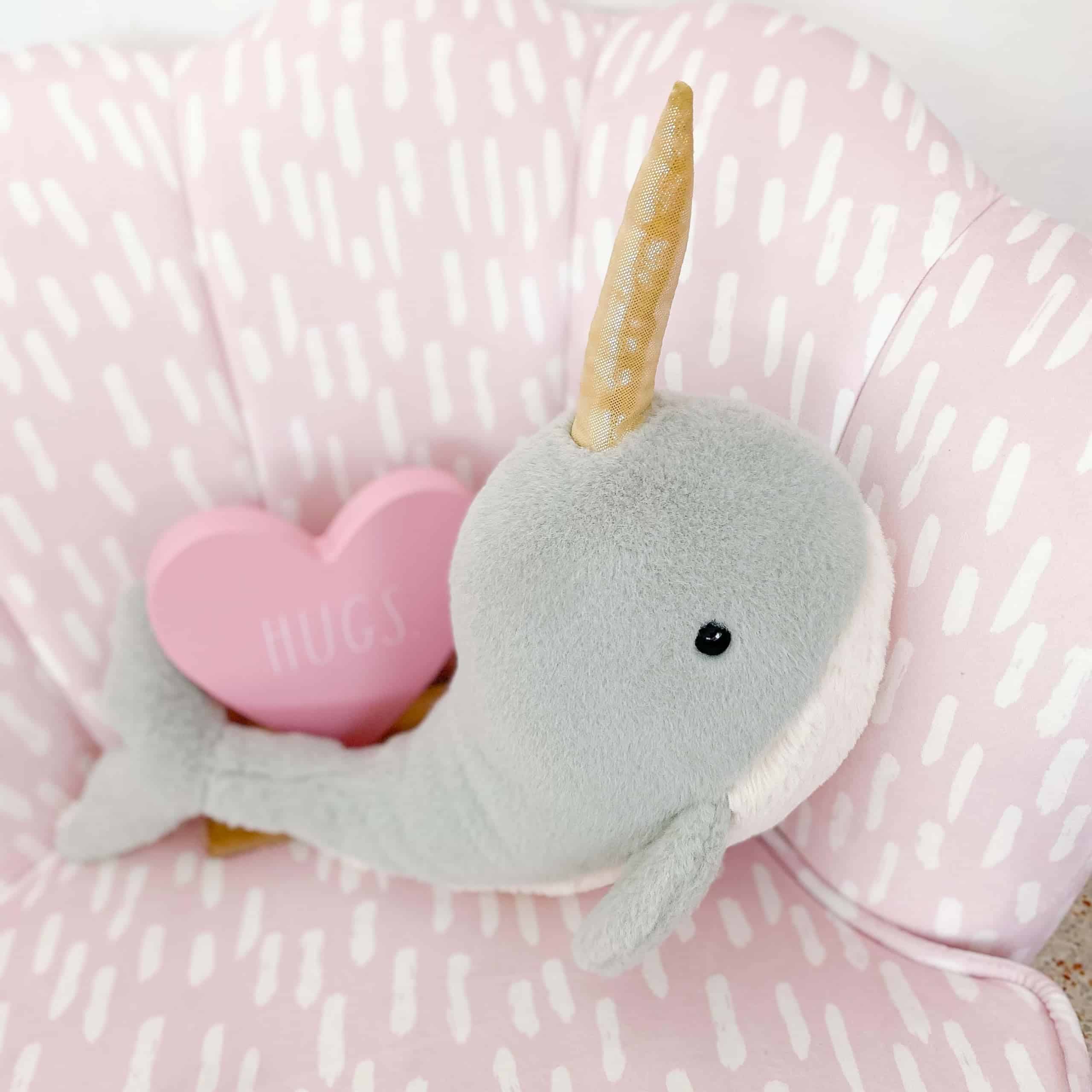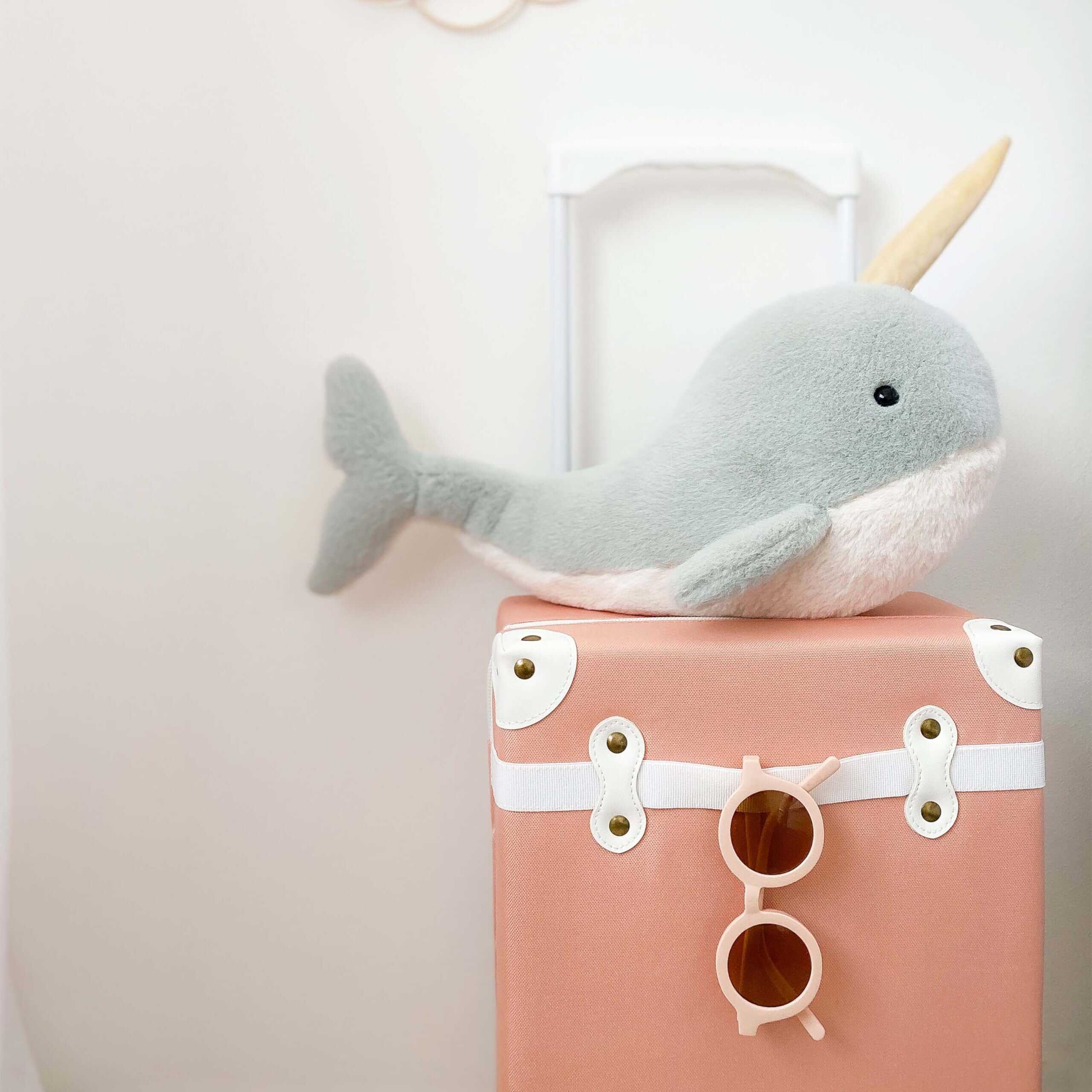 Este narval exquisitamente tallado es el compañero ideal para abrazarse. Con su pelaje verde mar y cuerno brillante, es casi imposible distinguirlo del océano. ¡Las personalidades de cada personaje son distintas!