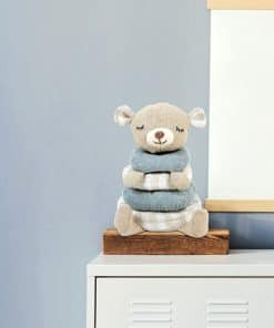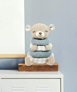 Our Parisian Petit Bear is a cute baby toy that can be stacked and features four fabric rings made of a soft fabric with eye-catching patterns and colours. With the aid of this exquisitely crafted baby activity toy, you can assist a young child in developing their motor abilities as well as their eye-hand coordination. Our baby stacking toy offers hours of entertainment as well as instructive play, making it suitable for infants as young as a few months old all the way up to toddlers.