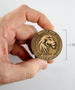 Moneda del Desafío del León de Hombres Poderosos de Dios, Paquete a Granel de 10 Tokens de Fuerza Constante y Discipulado Estas monedas del desafío bañadas en oro antiguo de alta calidad son un excelente token para esposos, padres, hijos, entrenadores y jugadores para llevar en su bolsillo como recordatorio de que nuestra fuerza viene de Dios. Lleve uno consigo para sus batallas personales, o páselos a quienes necesitan aliento. Estas monedas de Hombres Poderosos son excelentes regalos para clases de discipulado, equipos deportivos, grupos de hombres y estudios bíblicos. Nunca esté sin su token de firmeza; nunca olvide de dónde viene su fuerza!Sea cual sea lo que Dios te esté llamando a hacer, Él está contigo todo el camino hasta la finalización. No tenemos que temer lo que pueda venir. Más bien, debemos ser fuertes y valientes, sabiendo que nuestro Dios está con nosotros y que va delante de nosotros para enderezar nuestros caminos!Estas monedas del León de Dios son perfectas herramientas para servir como un estímulo religioso. Mantenga estas monedas del León y la Cruz en su bolsillo o mochila para llevar la Alegría del Señor con usted donde quiera que vaya, o póngalas en exhibición en cualquier mesa o escritorio. ¡Estas monedas del León también son excelentes regalos para equipos deportivos! Recuerde a sus equipos de fútbol, béisbol, baloncesto o fútbol que el Señor está con todos ellos y que deben permanecer tan feroz como los leones y ser los Hombres Poderosos que Dios los ha llamado a ser. Diseñadas cuidada y exquisitamente, estas monedas del desafío del versículo bíblico son los regalos o tokens perfectos de aliento para regalar a amigos o familiares. Haga el día de alguien con un gesto simple y amable y un pequeño regalo. También una gran herramienta para ayudas didácticas a granel y lecciones de objetos en la iglesia, escuela, grupos pequeños, grupos juveniles y estudios bíblicos.Frente: La cabeza de un león, con texto, «Hombres Poderosos» / «El Señor está contigo» / «Jueces 6:12″Reverso: Cruz, con texto, «Sé fuerte y valiente. Josué 1:9″Tamaño: 1.75» de diámetro, 5 mm de grosor
