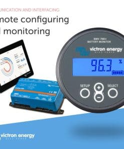 El Victron Energy BMV-700H muestra el % de Estado de Carga, Voltaje, Corriente, Energía / Tiempo restante, entre otros datos importantes. Es fácil de programar para una configuración inicial rápida. Se recomienda consultar a un profesional con licencia y seguir todos los códigos eléctricos aplicables durante la instalación debido a la aplicación de alto voltaje, el shunt se encuentra alojado en un recinto especial para mayor seguridad.