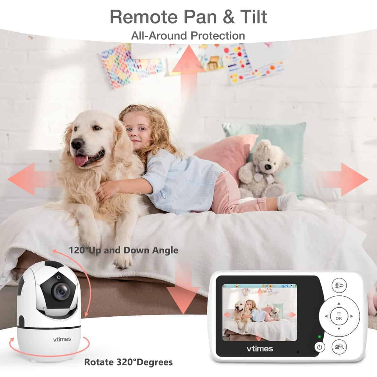 6. Funciones inteligentes: Este monitor de bebé de viaje le permite disfrutar de canciones de cuna relajantes, monitoreo de temperatura, recordatorio de alimentación y comunicación bidireccional con nuestra cámara de bebé. El Auto Pan-Tilt-Zoom agrega una capa adicional de conveniencia.