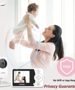 2. Conexión Segura y Privada: No es necesario Wi-Fi ni emparejamiento de aplicaciones. Esta cámara de bebé utiliza la tecnología FHSS 2.4GHz más reciente, proporcionando una conexión estable y segura. Puedes estar seguro de que la privacidad de tu bebé está protegida, ya que esta tecnología garantiza que no haya conexión de hackers.