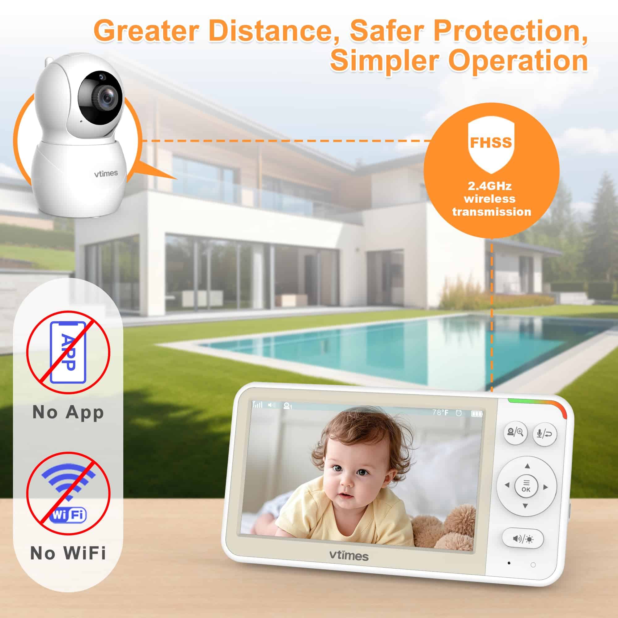Monitor de Bebé de Video VTimes 5» Sin WiFi con Batería de
