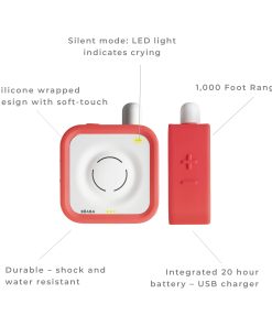 Alcance de 1,000 pies para usar en cualquier parte de la casa. Extremadamente duradero: resistente a golpes y al agua. Modo silencioso: el LED indica llanto, sonido digital: sistema de ajuste automático. Batería integrada de larga duración (25 horas), cargador USB. Envuelto en silicona suave al tacto, libre de BPA, plomo y ftalatos.