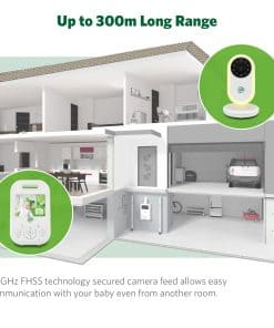 Mantén un ojo en tu bebé durante toda la noche con hasta 12 horas de transmisión de video con una sola carga en el Monitor de Video Digital para Bebés LeapFrog LF2423. Asegúrate de que tu bebé esté cómodo monitoreando la temperatura de la guardería que se muestra en la pantalla LCD. Lo mejor de todo, puedes monitorear fácilmente a tu bebé durante la noche con hasta 12 horas de transmisión de video con una sola carga.