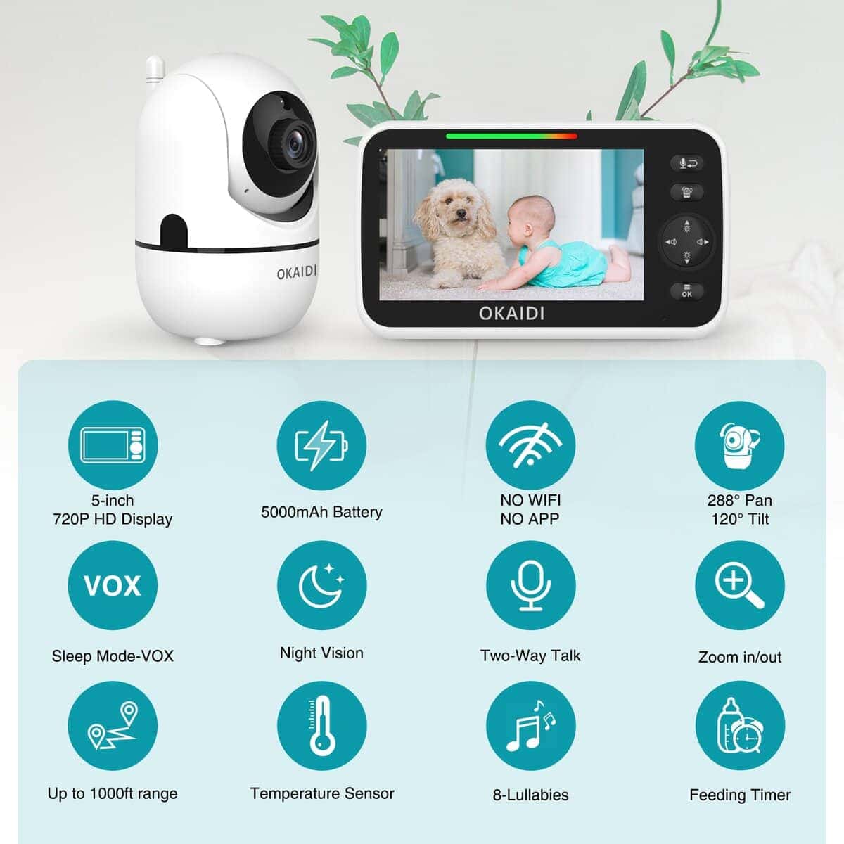 Monitor de Bebé OKAIDI HD 720P, Monitor de Bebé de 5