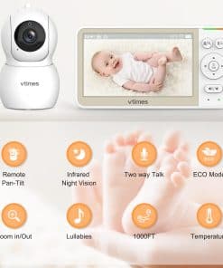 Monitor de Bebé VTimes de 5» con Cámara y Audio, Batería
