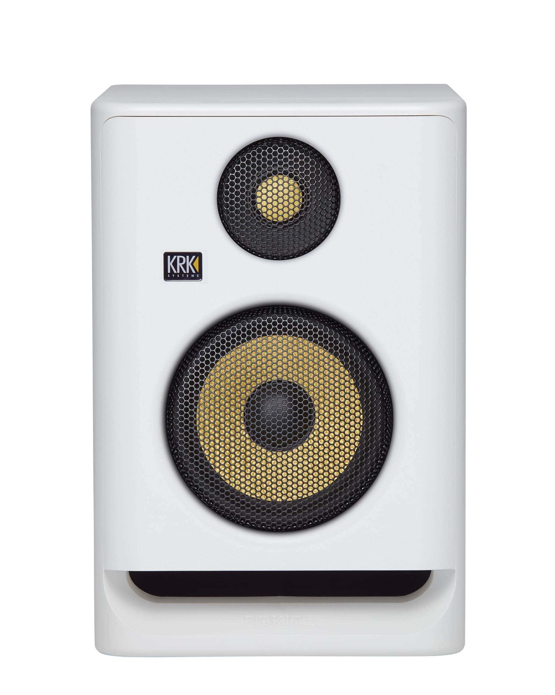 Monitor de estudio KRK de 5″ color blanco. El DSP-driven Graphic EQ con 25 ajustes te ayuda a condicionar tu entorno acústico y ofrece nuevos niveles de versatilidad en un monitor de estudio para obtener un sonido óptimo en tus grabaciones.