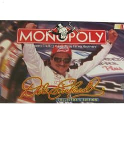 Juega el primer juego de Monopoly en honor a una leyenda viva! Toma riesgos, haz tratos e intimida a tus oponentes. Posee los autos de carrera que han coronado la legendaria carrera de campeonato de la NASCAR de Dale Earnhardt. Viene con 3 dados en blanco/negro coleccionables y fichas de peltre personalizadas, incluyendo el auto de carrera número 3 de Earnhardt y su transportador. Oficialmente licenciado por la NASCAR y Dale Earnhardt, Inc. ¡Un coleccionable imprescindible para el fiel fan de Dale Earnhardt!