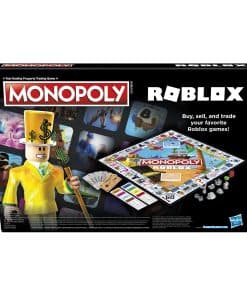 En el juego de mesa Monopoly: Edición Roblox 2022, los jugadores compran, venden e intercambian algunas de sus experiencias favoritas de Roblox, como Adopt Me!, Welcome to Bloxburg, Royale High ¡y más! El juego incluye un código especial que te permite canjear un item virtual exclusivo (Sombrero Mr. Bling Bling) en Roblox. Con ilustraciones, temas y elementos inspirados en la popular plataforma en línea, los jugadores se mueven por el tablero comprando tantas Oficinas de Desarrollo de Juegos y Estudios de Desarrollo como puedan. El juego es para 2-6 jugadores, a partir de 8 años, y es un excelente regalo para los fans de Roblox. Derechos de autor 2021 Roblox Corp. ROBLOX es una marca registrada. Todos los derechos reservados. Los nombres y logotipos de Hasbro, Hasbro Gaming, Parker Brothers y Monopoly, el diseño distintivo del tablero de juego, las cuatro esquinas, el nombre y personaje del Sr. Monopoly, así como cada uno de los elementos distintivos del tablero y las piezas de juego son marcas comerciales de Hasbro para su juego de intercambio de propiedades y equipo de juego.