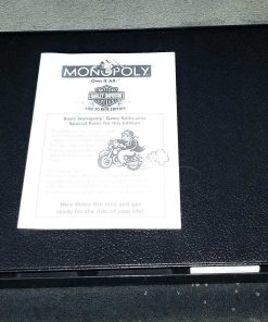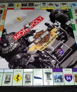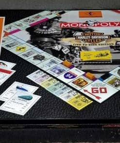 Avanza tu ficha de motor Evolution a la tienda de pintura personalizada; no pases por «GO»; no recolectes $200. Y así es con el juego de Monopoly: Edición Harley-Davidson Live To Ride, la versión personalizada exitosa que combina exitosamente Parker Brothers con Pascal Picotte. El juego es el mismo que la versión tradicional: comprar, vender y cobrar alquileres en propiedades y aumentar su valor erigiendo varias estructuras, pero este tablero de juego presenta coleccionables de Harley y las estructuras son garajes y concesionarios (la versión Live To Ride de casas y hoteles). El Impuesto sobre la Renta se convierte en una Autopista de Peaje, y Boardwalk y Park Place dan paso a los modelos de Softail Deuce 2000 y el modelo de moto 1903 con el número de serie 1. El estacionamiento gratuito y la visita a la cárcel conservan sus gráficos de 1935; y el estacionamiento gratuito para tu Harley siempre es bueno. –Tony Mason