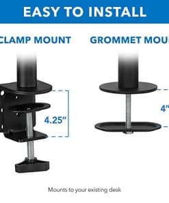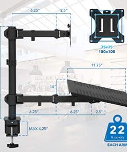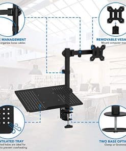 El combo de montaje de escritorio para laptop y monitor MI-4352LTMN ayuda a reducir el riesgo de lesiones en la espalda y el cuello que son comunes con horas de estar sentado en una postura corporal incorrecta. Al elevar la computadora portátil a una altura ergonómica, puede crear espacio adicional en el escritorio mientras eleva la pantalla a una altura óptima para el usuario. Agregar un monitor junto a una laptop aumenta la productividad al menos duplicando el tamaño de la pantalla. Una solución perfecta para aplicaciones de espacios limitados al eliminar el desorden del escritorio, utilizando eficazmente el espacio de trabajo y montando las computadoras portátiles de forma conveniente. Los clips de gestión de cables ayudan a organizar los cables que van hacia la computadora. La cabeza del monitor tiene un patrón de pernos VESA 75×75 y VESA 100×100. El patrón VESA es el patrón de agujeros cuadrados detrás del monitor y mide típicamente 3 pulgadas por 3 pulgadas o 4 pulgadas por 4 pulgadas. Para la compatibilidad con este montaje, verifique la parte trasera de su monitor para el patrón de pernos y el peso total. La capacidad de movimiento completo de los brazos permite al usuario acercar o alejar la laptop y el monitor, así como girarlo a la izquierda y a la derecha. Los brazos se pueden levantar o bajar en el poste de 17.7 pulgadas de altura. La cabeza del monitor puede girar 360 grados para permitir la rotación del monitor de los modos horizontal a vertical, sin necesidad de quitarlo. La bandeja ventilada admite laptops de hasta 15 pulgadas de tamaño de pantalla con su plataforma de 14 pulgadas de ancho por 11.8 pulgadas de profundidad. La parte inferior de la plataforma tiene un labio para sostener la laptop de forma segura en su lugar. Cada brazo puede soportar una capacidad de carga total de 22 lbs. Materiales de acero y aluminio de alta calidad garantizan durabilidad y una apariencia elegante. La base de doble abrazadera resistente no requiere herramientas especiales y se puede conectar de forma segura a escritorios de hasta 4 pulgadas de grosor. ¡Mount-It! tiene más de una década de experiencia en soluciones de montaje de TV, computadoras y monitores con decenas de miles de opiniones positivas sobre nuestros productos y nuestro servicio. Ofrecemos soporte las 24 horas del día para la instalación del producto, configuración y resolución de problemas.