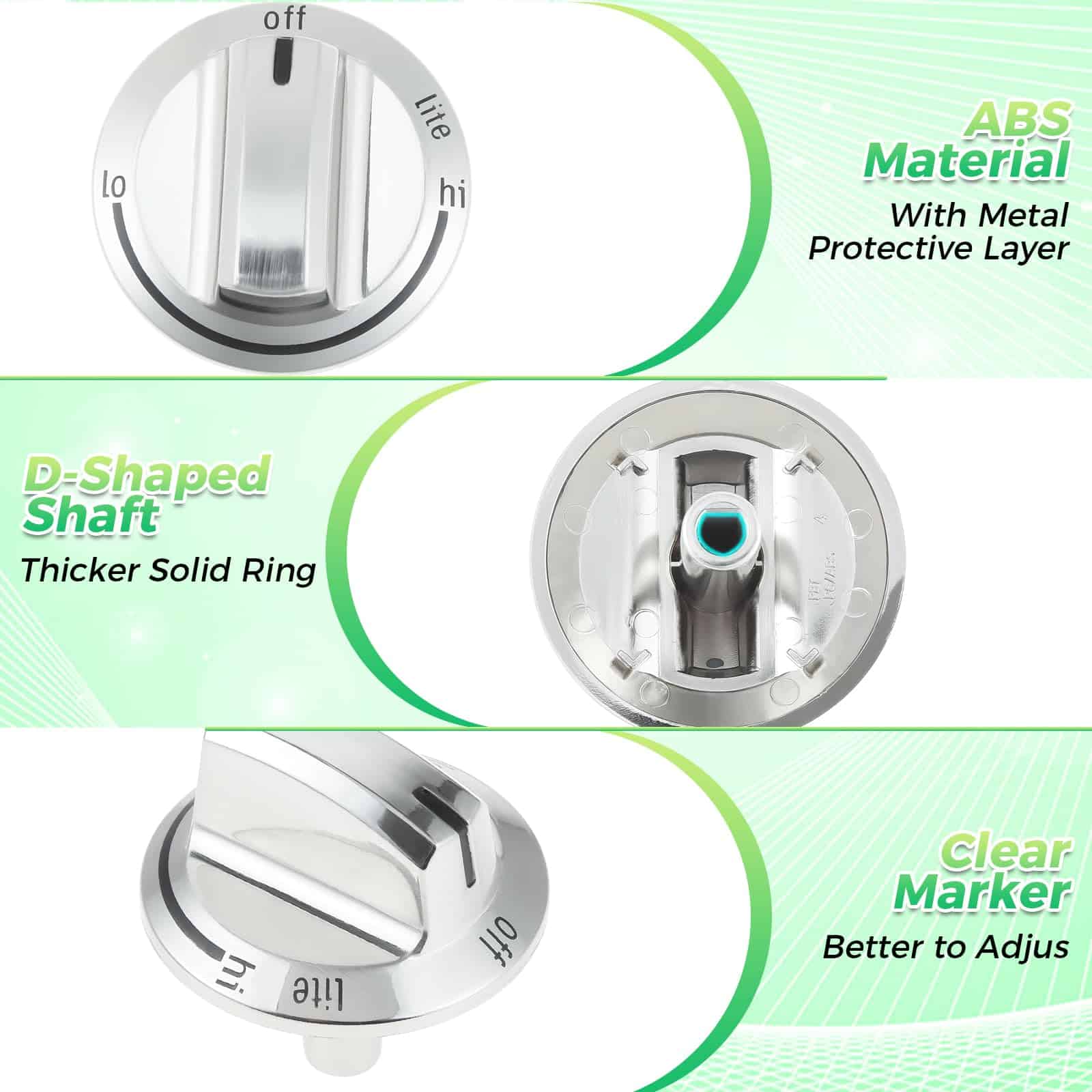 1. MATERIAL PREMIUM: Nuestras perillas de estufa de gas 5304525746 de repuesto para Frigidaire están hechas de material polímero termoplástico ABS, resistente al calor y al desgaste, la carcasa exterior de electrochapado de acero inoxidable no solo previene eficazmente problemas de corrosión y óxido, sino que tiene una apariencia hermosa y lustrosa. Las perillas de repuesto para estufa Frigidaire están bien hechas por el fabricante para cumplir con el estándar OEM y garantizar una larga vida útil.