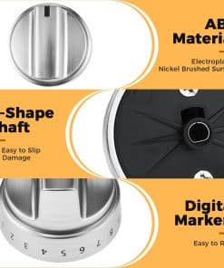 Material Premium: El interior de nuestras perillas de estufa de gas GE WB03X24818 reemplazos está hecho de plástico ABS premium que es resistente al calor y al desgaste, y la carcasa exterior está hecha de acero inoxidable y pulida para reforzar, no solo previene eficazmente problemas de corrosión y óxido, sino que también tiene una apariencia hermosa y lustrosa. Esta perilla soluciona los siguientes síntomas: no se enciende; no selecciona la configuración; no se gira. Compatibilidad: las perillas de estufa WB03X24818 reemplazan el número de pieza: PS11729081 AP5989029 4363588. Modelos de estufa de gas GE compatibles que comienzan con: series JGB645, JGB660, JGB700, JGB720, JGB735, JGB860, JGBS66, JGBS62, JGBS86, como JGB860SEJ1SS, JGB720SEJ5SS, JGB645EEK2ES, JGB720EEJ2ES, JGBS62REK1SS, JGB860EEJ2ES, JGB860SEJ2SS, JGB720SEJ5SS, JGB720EEJ5ES, GB720SEJ2SS, JGB700SEJ3SS, JGB700EEJ2ES, JGB720EEJ2ES, JGB700SEJ1SS, JGB720SEJ1SS, JGB720SEJ3SS, JGB735SP1SS, JGB860SEJ2SS, etc. Fácil de Instalar: En el proceso de reemplazar perillas, no doble la perilla vieja hacia arriba o hacia abajo, deslícela directamente fuera del vástago y deslice nuestras perillas de estufa de gas GE WB03X24818 reemplazos de nuevo al vástago. Es normal que el puerto de tipo D sea demasiado pequeño para el primer uso, y se puede aplicar aceite lubricante para ayudar en la instalación. Paquete Incluido: El paquete de 5 perillas de estufa GE WB03X24818 reemplazos tiene dimensiones de 2.25 x 2.25 x 1.9 pulgadas en LxAxH y el agujero de montaje es de 0.25 x 0.22 pulgadas en dimensiones. Esta perilla cuenta con marcas audaces para APAGADO, Lo, 1, 2, 3, 4, 5, 6, 7, 8, 9, Hi y LITE en la superficie. No hay duda de que esta es una excelente elección para arreglar o reparar perillas de estufa de gas eléctrica. Mejor Servicio: Lo que compras no es solo el producto, sino también nuestro completo servicio de garantía de calidad. Cualquier pregunta sobre la calidad del producto y los modelos, no dude en contactarnos, proporcionaremos un servicio 100% satisfactorio para usted.