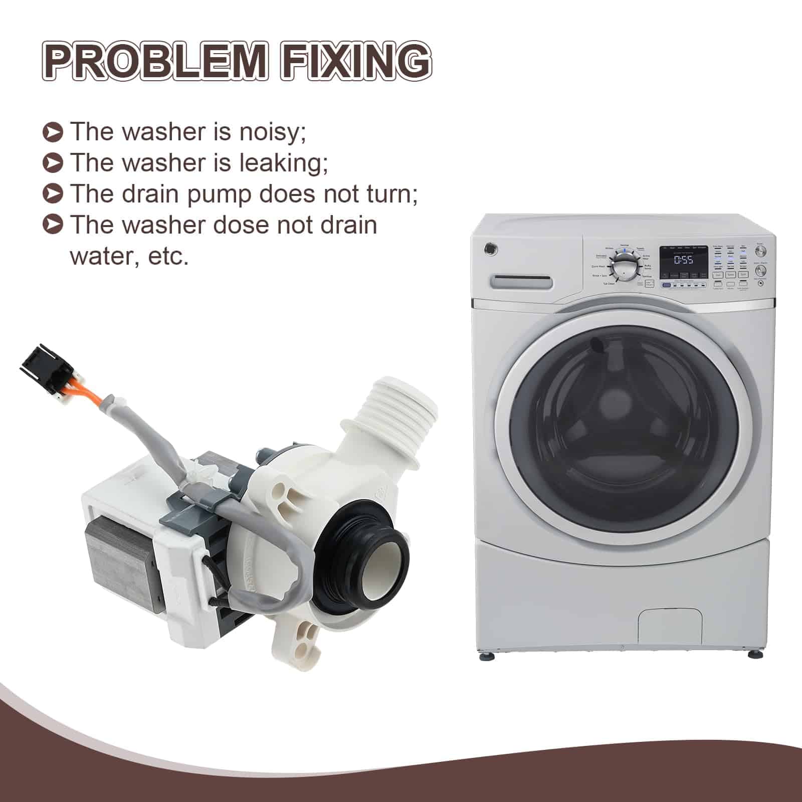 3. El ensamblaje de la bomba de drenaje WH23X24178 puede eliminar el agua de la lavadora durante la parte de drenaje del ciclo. El motor de la bomba de drenaje debe ser reemplazado cuando la lavadora no pueda drenar correctamente.