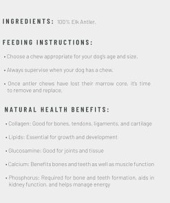 En Get Joy, hacemos buenos alimentos para perros con ingredientes de los que no tienes que preocuparte, y nuestros mordedores no son una excepción. Nuestros Elk Antler Splits, provenientes de cuernos de alce de América del Norte que se descartan o se recolectan naturalmente en EE. UU., son el mordedor natural perfecto para perros, incluso para aquellos masticadores agresivos. Estos mordedores están llenos de calcio y minerales y promueven la higiene dental de tu cachorro, manteniendo sus dientes limpios y saludables.