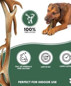 Los Mordedores Antos son de Ciervo Rojo, muchos de los cuales provienen de manadas de las Tierras Altas de Escocia, y simplemente han sido limpiados (sin químicos) y cortados en diversas tallas/pesos para que los perros los masticen. Se han eliminado los puntos afilados para hacerlos seguros. El ciervo es un mordedor saludable, lleno de minerales y calcio. Están hechos de hueso, por lo que son duraderos, y al no estar procesados, tampoco se astillarán. El Mordedor Antos satisface la necesidad natural de los perros de masticar, al mismo tiempo que ayuda a fortalecer y limpiar los dientes. No hay olor proveniente del ciervo, y a medida que tu perro desgasta el mordedor con el tiempo, también habrá muy poco desorden. Al ser un mordedor de crecimiento natural, no hay dos mordedores iguales. Algunos son de un color marrón oscuro más duro, mientras que otros son de un tono gris/blanco más suave. También vienen en diversas formas y tamaños, manteniendo a tu perro interesado por más tiempo. Nuestros mordedores de ciervo provienen de un recurso natural y sostenible. Ten en cuenta: El Mordedor Antos se vende por peso, no por tamaño. Pequeño – Menos de 75g, Mediano – 75-150g, Grande – 150-220g.