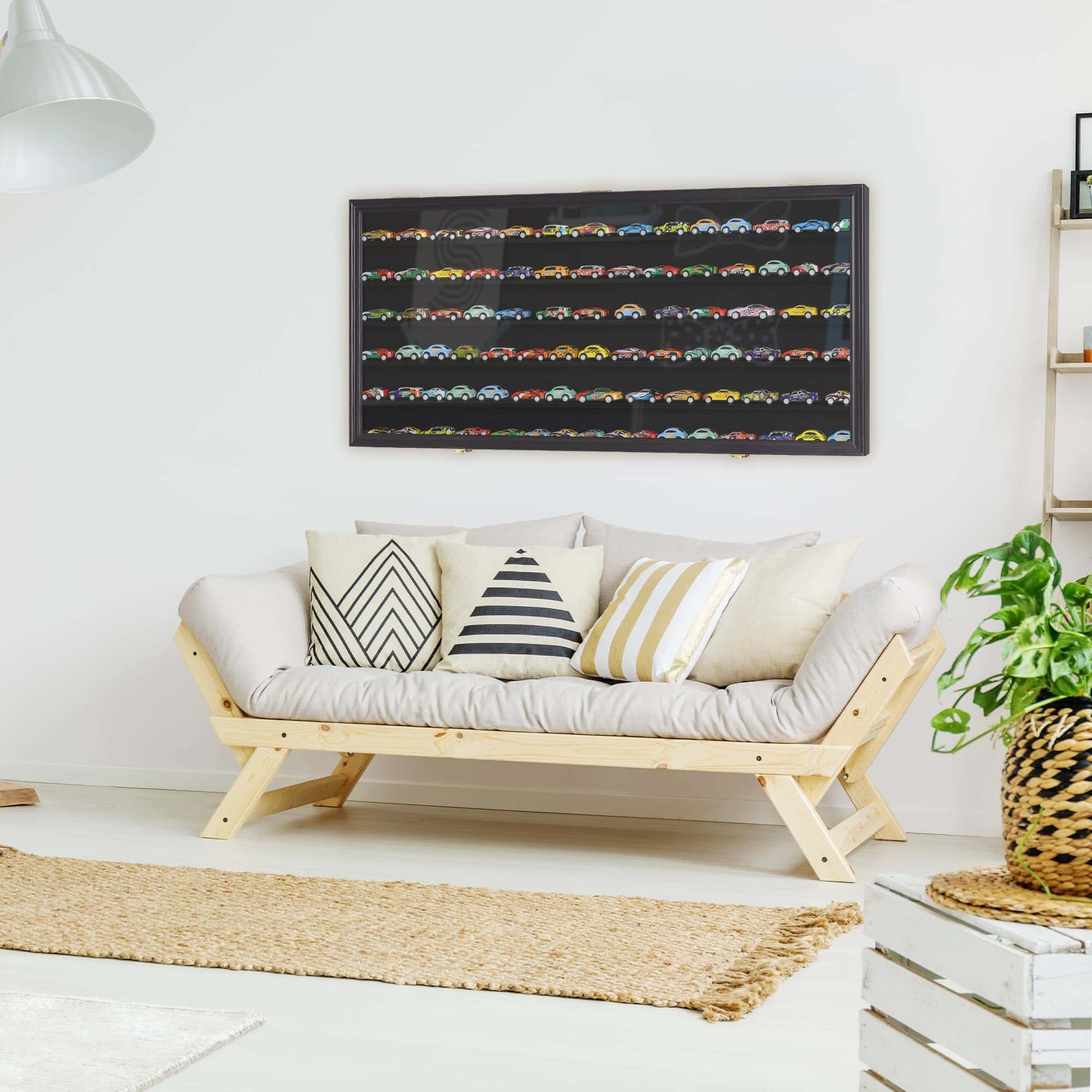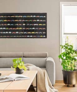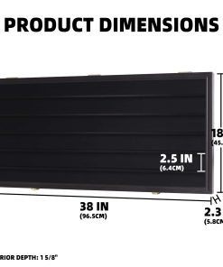 Mostrador de exhibición bellamente construido para trenes en escala HO, N y Z, ruedas de autos de fundición a presión en escala 1/64 y 1/43. Una forma elegante de mostrar tu colección. 6 estantes con 38″ de largo cada uno para trenes y autos. Fondo forrado con fieltro para crear una exhibición elegante. Tiene una puerta acrílica súper clara con bisagras para proteger del polvo y los daños. Las bisagras están en la parte superior del mostrador y los pestillos en la parte inferior para mantener la puerta cerrada. Soportes de pared en la parte trasera del mostrador para colgar. Dimensiones: 18″H X 38″W X 2.3″D Peso (neto): 15 lbs Profundidad interior: 1 5/8″ Espacio entre filas: 2.5″