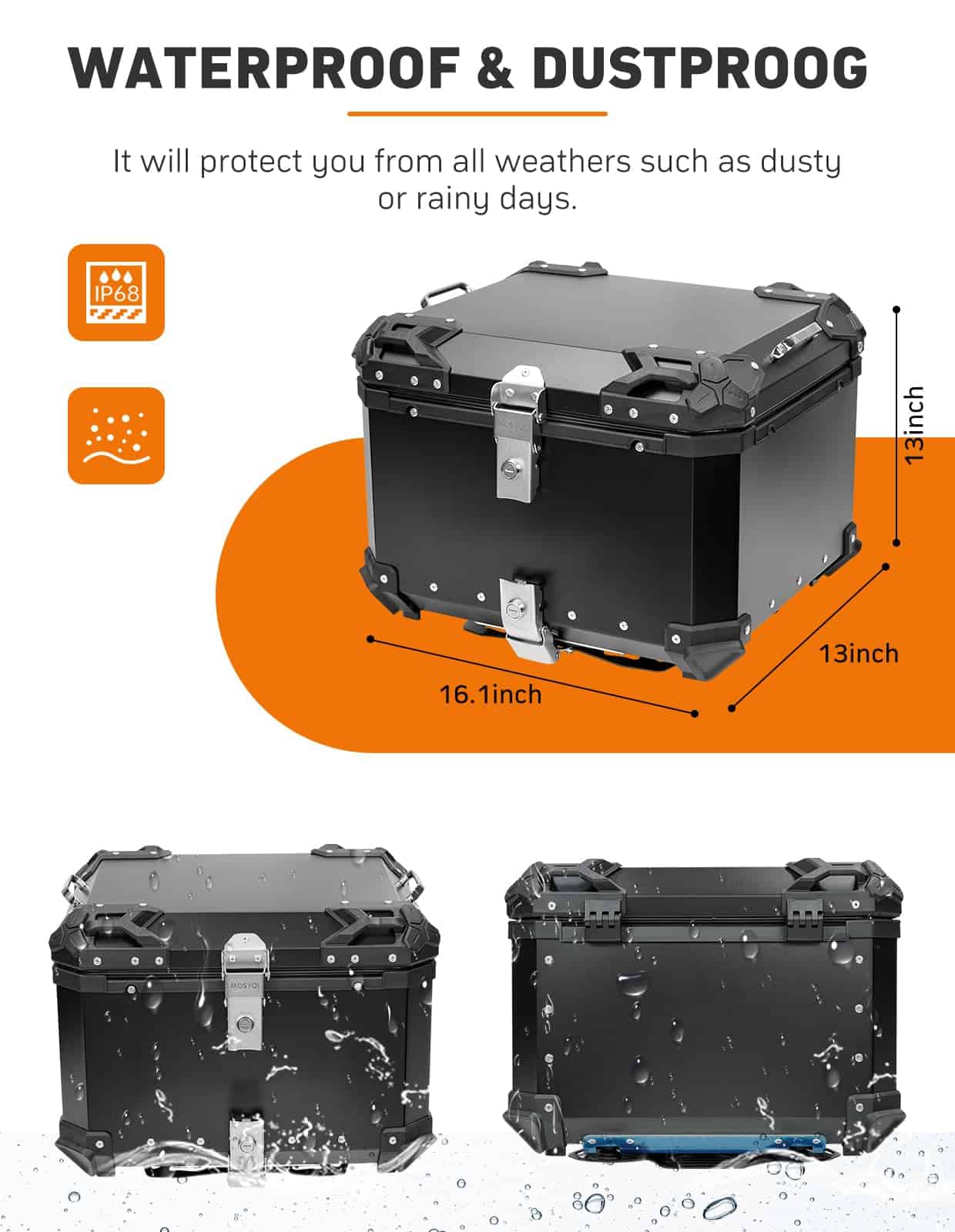 La maleta superior para motocicleta MOSYQI de 45L es una solución de almacenamiento versátil y de alta calidad para motociclistas que necesitan transportar equipaje de forma segura en sus viajes. La resistencia a la caída y durabilidad de esta maleta es excepcional, con 8 esquinas envolventes de parachoques hechas de fibra de vidrio y nailon y un cuerpo de caja de aleación de aluminio de 2 mm de espesor. Además, la superficie tratada con un recubrimiento especial brinda una excelente resistencia a los arañazos y la abrasión. La maleta cuenta con un diseño de sellado resistente a agua y polvo gracias a su anillo de goma recubierto de alambre, lo que garantiza la protección de sus pertenencias. Incluye una variedad de accesorios complementarios, como una bandeja de montaje de hierro, calcomanías reflectantes de seguridad y un paquete de accesorios de montaje. La versatilidad y la seguridad son puntos destacados de esta maleta, con una compatibilidad universal con varios modelos de motocicletas y marcas. La instalación y desmontaje rápidos permiten una mayor comodidad para el usuario en situaciones que requieran ajustes rápidos en el espacio de almacenamiento. Además, las cerraduras de acero inoxidable ofrecen confidencialidad y protección antirrobo para sus pertenencias. La maleta MOSYQI 45L es la elección perfecta para motociclistas que buscan un equipaje seguro y versátil para sus viajes.
