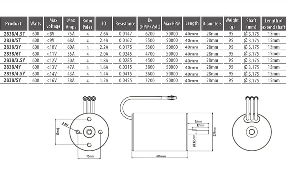 Motor Brushless 2838 4700KV de Repuesto KingVal Eje de