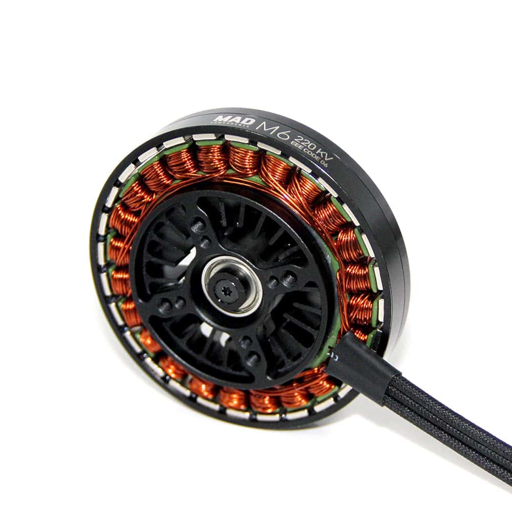 El motor Antimatter M6C06 está diseñado para cargar un peso de 1.5-2.5kg, soporta voltajes de 6S, 8S, 12S. Edición EXTREME para reducción extrema de peso manteniendo el mayor rendimiento posible. Diseño hueco máximo, peso ultraligero, rápida disipación de calor. Diseño de estator único, configuración 24N28P. Rodamiento EZO importado duradero, más rotación estable, más resistente. Utilización de imán de arco de alto rendimiento, mejorando el rendimiento en un 5%. Opción de KV: 140KV/220KV/320KV