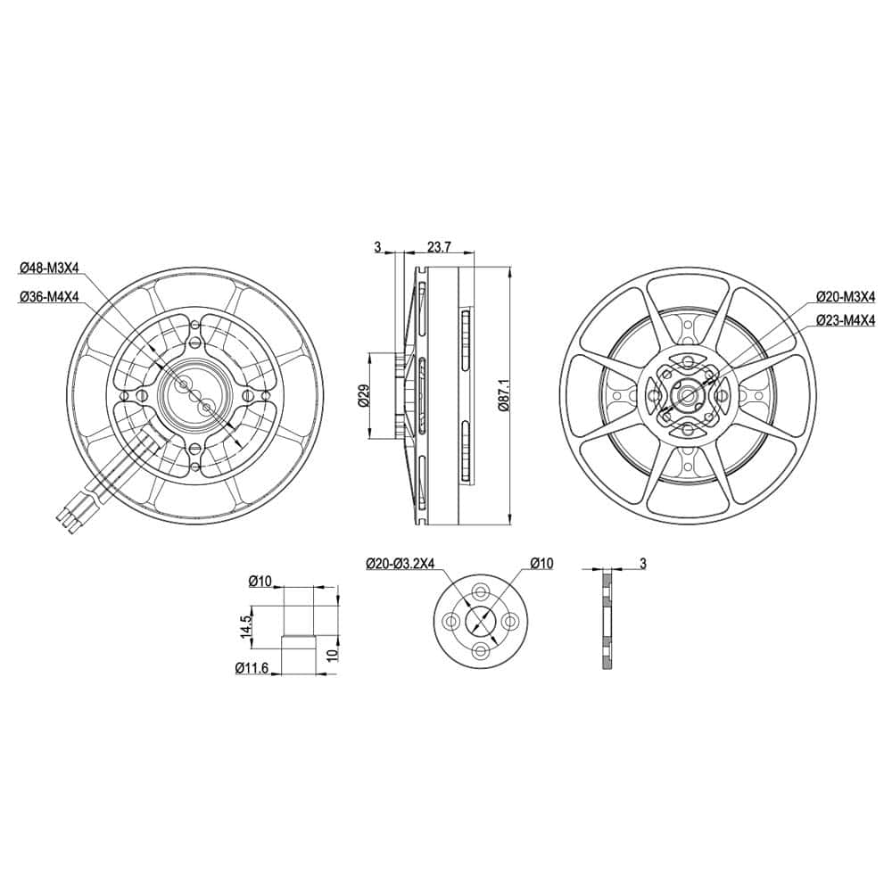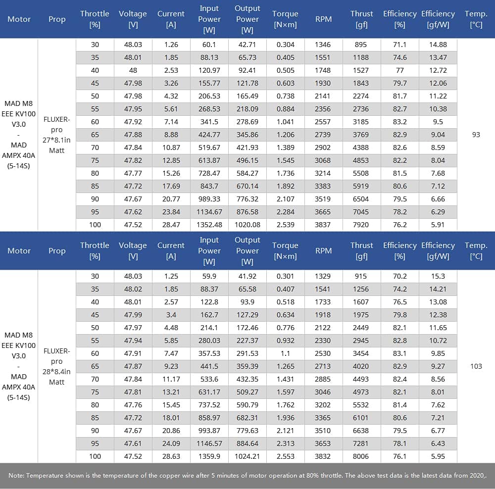 El motor 8108 es el producto más clásico entre los motores de UAV. El MAD M8 es uno de los motores más eficientes entre ellos y los más utilizados para UAV de alta gama en fotografía aérea, exploración, arqueología, prospección remota, levantamiento cartográfico, etc. El tiempo de vuelo de resistencia varía de 30-120 minutos. El M8 EEE V3 es la última versión del MAD 8108 EEE, más eficiente y ligero, ideal para vuelos de resistencia Diseñado para transportar cargas útiles de 2000 a 3000g por rotor, con hélice de carbono de 28-30 pulgadas. Soporta 6S-12S. La máxima fuerza de un solo rotor es de hasta 8kg, el motor individual pesa 240g. Óptimo tiempo de vuelo de largo alcance, la mejor combinación para obtener un combo potente ligero y eficiente para un tiempo de vuelo prolongado. Opción KV: 85KV 100KV 150KV 180KV