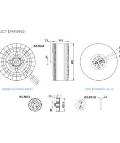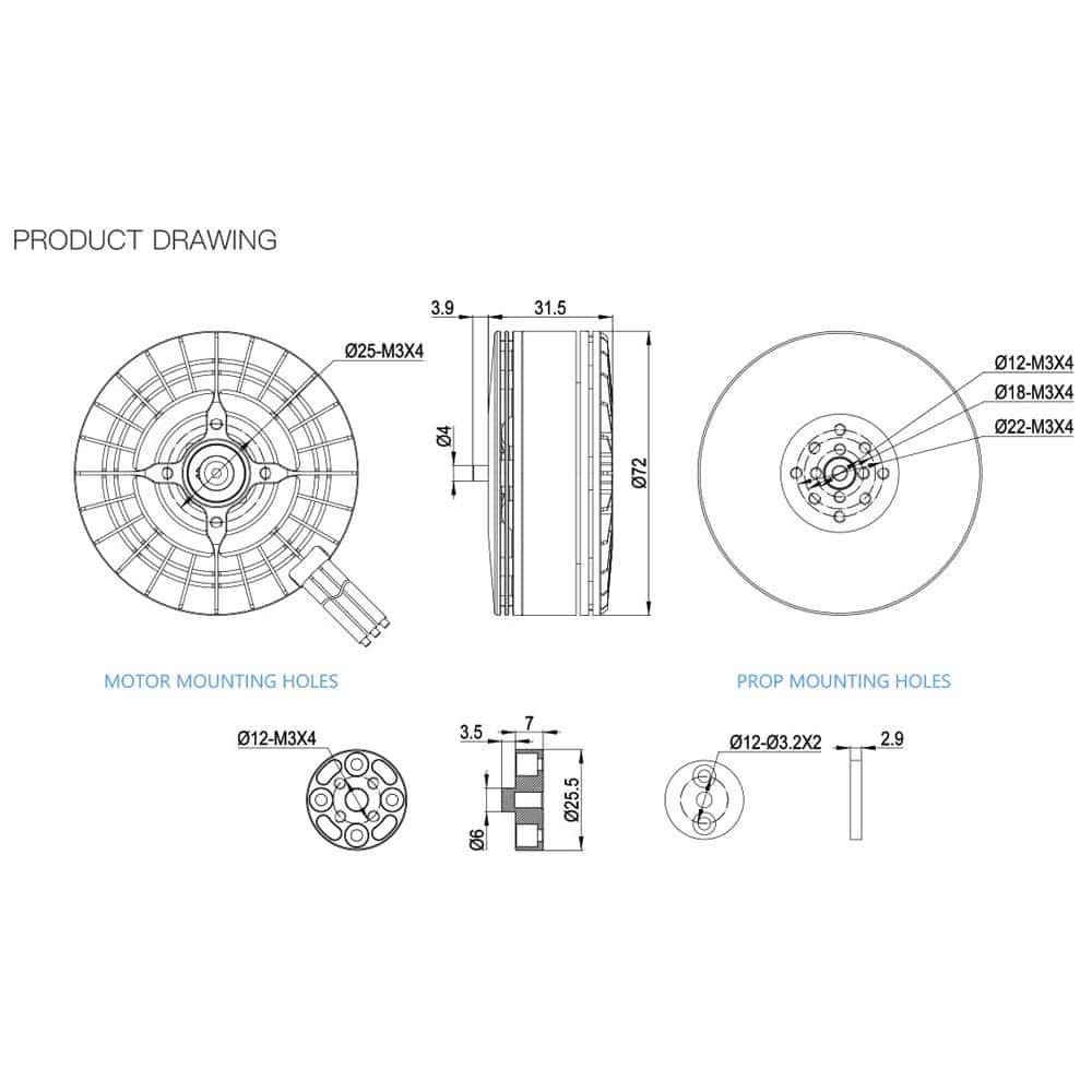 VERSÁTIL, EFICIENTE Y CONFIABLE El M6C12 IPE V3 introduce mejoras de diseño y optimizaciones de piezas de ensamblaje para aumentar la confiabilidad y estabilidad sobre su predecesor. También mantiene las excelentes propiedades y características de la generación anterior y mejora la seguridad y la vida útil del motor que cumple completamente con los exigentes requisitos de diversas industrias. La revisión V3 puede soportar cargas de tarea más pesadas y proporcionar una redundancia de potencia más grande para mejorar la resistencia al viento y la maniobrabilidad de la plataforma. Fuerza máxima de tracción del tren de potencia de hasta 10.8 kg/rotor (48V, nivel del mar) Peso de despegue recomendado 2.5 4.0 kg/rotor Peso del motor solo 280 g