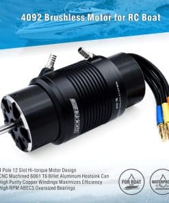La diferencia entre este motor brushless y un motor convencional es que es a prueba de agua con un rendimiento sobresaliente a prueba de agua. Diseño de motor de 4 polos y 12 ranuras de alto torque, fabricado con aluminio 6061 T6 y bobinados de cobre de alta pureza. Equilibrado de rotor de precisión para máxima fiabilidad y RPM.