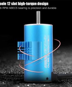 4 polos de 12 ranuras de diseño de alto par de torsión. Disipador de calor de aluminio mecanizado CNC, 6061-. Tratamiento de oxidación secundaria para una apariencia exquisita. Devanados de cobre de alta pureza maximizan la eficiencia, soporta temperaturas de calor de 180-200 . Rodamiento ABEC5 de alta RPM y con bajo ruido y poca fricción. Conector bañado en oro de 4.0mm, eje de 5.0mm, tornillo M3. Adecuado para coches RC a escala 1/8, 1/10. Rotor equilibrado con precisión para una fiabilidad óptima y RPM máximo. El equilibrio dinámico se controla dentro de los 10mg. El rotor es desmontable y reemplazable. El diseño impermeable garantiza , lo que prolonga su vida útil. Especificación: Condición: Nuevo Marca: VGEBY1 Tipo de artículo: Accesorio de RC Material: Metal Color: Azul Largo del motor: Aprox. 70mm / 2.76 pulgadas Diámetro del motor: Aprox. 36mm / 1.42 pulgadas Peso: Aprox. 319g Valor KV: 2650KV Lista de paquetes: 1 Motor con Disipador de Calor