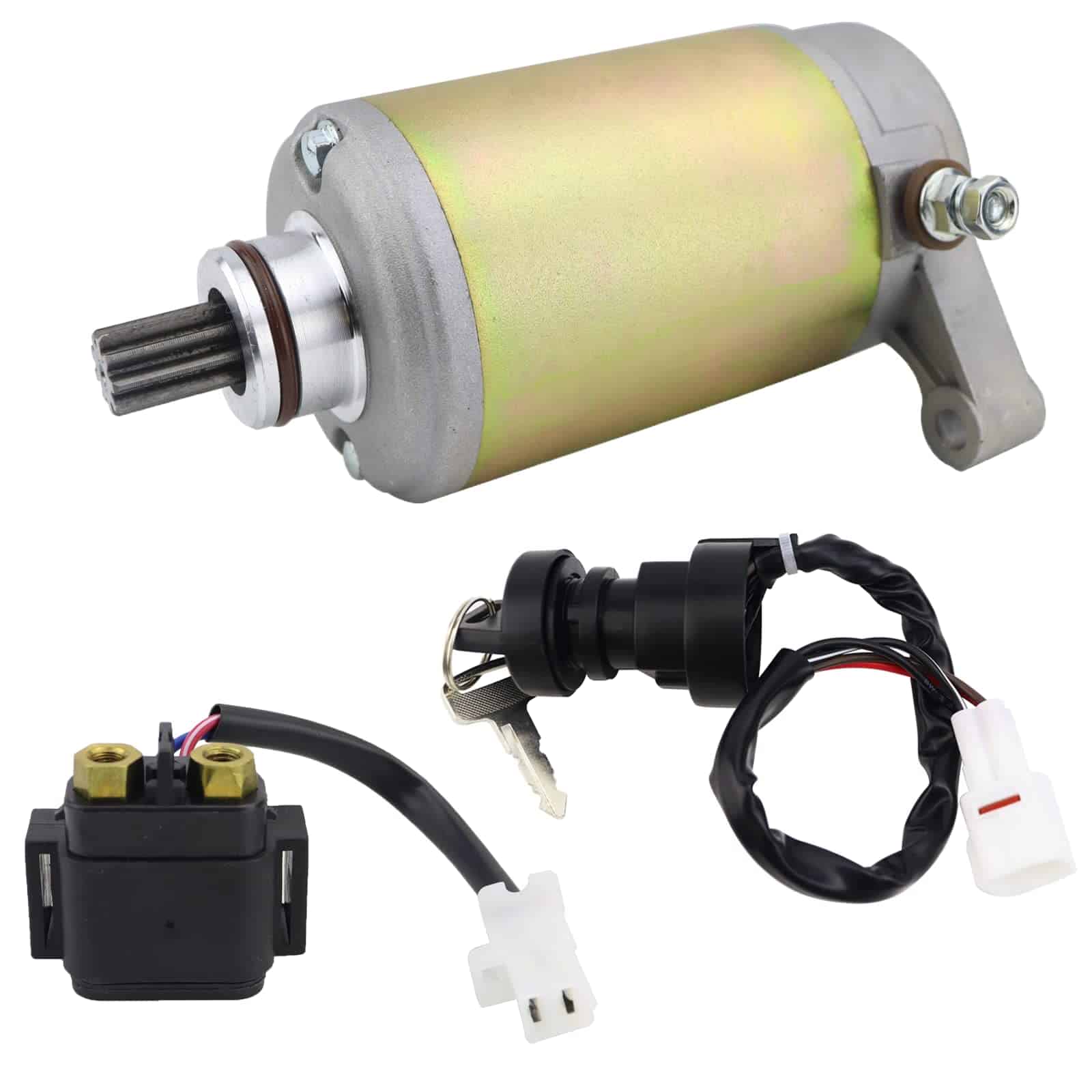 Incluido en el Paquete: 1x Motor de Arranque, 1x Relé de Solenoide de Arranque, 1x Interruptor de Llave de Encendido. Compatible con o Reemplazo Para ATV Yamaha: Kodiak 400 4×4 YFM400F 1996-1998. Números de Parte de Reemplazo: Yamaha: 1UY-81890-00-00, 1UV-81800-50-00, 1UY-81800-51-00, 1YW-81800-50-00, 1YW-81800-51-00, 2HR-81800-50-00, 2HR-81800-51-00, 2HR-81800-52-00, 4SH-81800-00-00. Lester: 18756. WAI: 18756N. J & N: 410-54018. Arrowhead: SMU0065. MINNPAR: 57-2801. Stockers Starters: YA-105. EMS: YA-105N. Tucker Rocky: 49-5706, 495706. BARSANCO: 610-215. CARGO: 113545. DENSO: 128000-3760, 128000-3761, 128000-3762, 128000-4240, 128000-4241, 128000-4242, 128000-4990, 128000-4991, 228000-9310. Especificaciones del Producto: Voltaje: 12V, Rotación: CCW, Dientes: 9, Tipo de Arranque: PMDD.