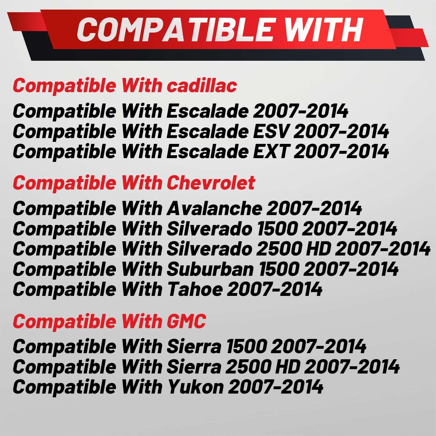 Motor de Asiento Eléctrico de 6 o 8 Vías sin Memoria Compatible con Cadillac Escalade Chevy Silverado Suburban Tahoe Avalanche GMC Sierra Yukon 2007-2014 Reemplazo Directo L0060111. Compatible con 2007-2014 Cadillac Escalade, Cadillac Escalade ESV, Cadillac Escalade EXT, Chevrolet Avalanche, Chevrolet Silverado 1500, Chevrolet Silverado 2500 HD, Chevrolet Suburban 1500, Chevrolet Tahoe, GMC Sierra 1500, GMC Sierra 2500 HD, GMC Yukon. Restaure la comodidad y rendimiento mejorado del asiento completo (6 u 8 vías) para una conducción óptima. Disfrute de una operación suave y silenciosa, perfecta para viajes largos o desplazamientos diarios. Diseño duradero y seguro: Construido con materiales de alta calidad, este motor cuenta con protección contra sobrecarga, sobrecalentamiento y cortocircuitos, asegurando un rendimiento y seguridad duraderos. Instalación sencilla: Diseñado como reemplazo directo, este motor viene con agujeros de montaje precisos y un conector de 6 pines para una instalación rápida y sin complicaciones. Se recomienda la instalación profesional para principiantes. Servicio de garantía confiable: Respaldado por una garantía de un año sin límite de millas, ofrecemos reemplazo o reembolso sin complicaciones si encuentra algún problema. ¡Su satisfacción es nuestra prioridad!