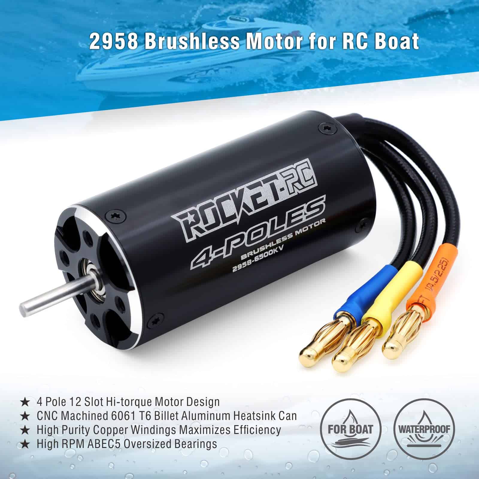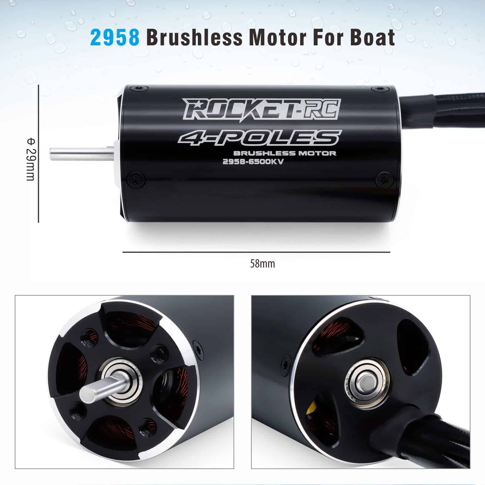 Motor de Barco RC sin Escobillas, Surpass Hobby 2958 6500KV