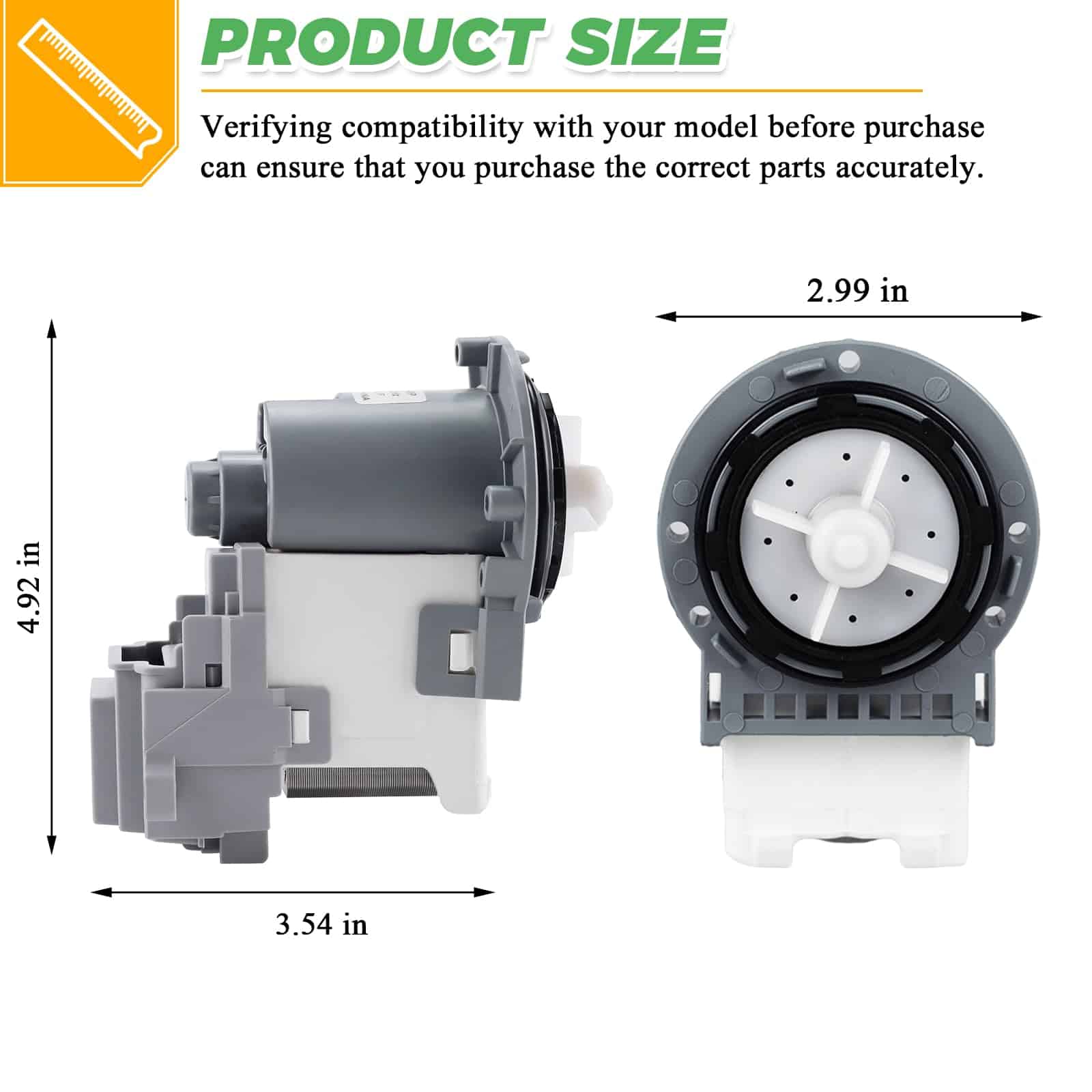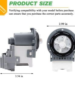 3. MODELO COMPATIBLE: La bomba de desagüe de la lavadora DC31-00054D es una parte (OEM) que se ajusta a las lavadoras de carga frontal y carga superior de Sam-sung en las series WA4, WA5, WF2, WF3, WF4 y WF5. Reemplaza los números de parte: 2754406, AP5583541, PS4204640, EAP4204640, px3516-01. Compatible con wf330anw/xaa wa45m7050aw/a4 wa50f9a8dsw/a2 wa52m8650av/a4 wf42h5200af/a2 wf50k7500aw wf448aap/xac wa15x7rdp/xap wf42h5000aw/a2 wf350anw/xaa wf350anp/xaa-04 wf330anb/xaa-07 wa50f9a6dsw/a2-00 WF431ABP/XAA-08 WF330ANW/XAA-01 WF361BVBEWR/A2-00 WF501ANW/XAA-03, etc.