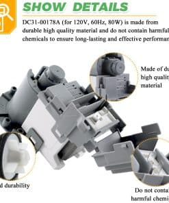1. ESPECIFICACIONES DEL ARTÍCULO Y ALTA CALIDAD: La bomba de desagüe para lavadoras DC31-00054D (120V, 60Hz, 80W) está hecha de metal duradero de alta calidad y material ABS, no contiene productos químicos dañinos para garantizar un rendimiento duradero y efectivo. La bomba de desagüe samsung px3516-01 se encuentra en la parte trasera de su lavadora y elimina el agua durante la fase de drenaje del ciclo. La bomba de desagüe PX3516-01 de la lavadora Samsung resolverá los síntomas que encuentre, es una buena opción para la sustitución directa.