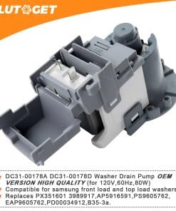 Motor de bomba de desagüe DC31-00178A para lavadora Samsung. Este motor elimina el agua de la lavadora durante la etapa de desagüe del ciclo. Es una pieza OEM GENUINA, lo que garantiza la más alta calidad y rendimiento. Incluye todo lo necesario para reparar los síntomas comunes como ruidos, falta de desagüe, fugas de agua y ropa más húmeda de lo normal. Fácil de instalar con las herramientas necesarias y siguiendo un vídeo de reparación en línea. Compatible con varios modelos de lavadoras Samsung. En Blutoget, nos comprometemos a hacer tu vida simple, cómoda y conveniente. No solo te ofrecemos productos de alta calidad, sino también un excelente servicio al cliente las 24 horas para garantizar tu satisfacción.