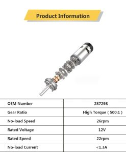 Especificaciones del producto: Motor de relación de torque alto de 500:1 Voltaje 12VDC Velocidad en vacío 26rpm Corriente en vacío 1.3A Velocidad nominal 22rpm Codificador 10 polos 5ppr Compatibilidad Ajuste directo para el sistema de deslizamiento en pared de Lippert Schwintek. Reemplazo perfecto para el motor de deslice del Gray Wolf 26 dbh 2014, Coachman Prism LE 2200 2016, Montana 2018, etc. Para más modelos de adaptación, consulte el número de OEM. (Reemplazar 287298).