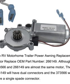 1. REEMPLAZO DE NÚMERO DE PARTE OEM El motor de repuesto para toldo de energía de remolque RV reemplaza el número de parte OEM: 266149. El 266149 tendrá conectores duales.