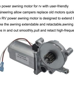 4. INSTALACIÓN FÁCIL El motor de toldo de energía para RV con ingeniería amigable permite a los campistas reemplazar los motores antiguos rápidamente. El motor de toldo de energía RV está diseñado para extender la vida útil, hacer el toldo extensible y retráctil, el toldo entra y sale suavemente, se extiende y se retrae a alta frecuencia.