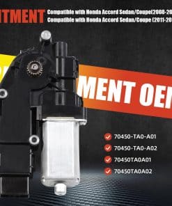 2. Números de pieza OEM de reemplazo: 70450-TA0-A01, 70450-TA0-A02, 70450TA0A01, 70450TA0A02. Este motor de techo solar es un reemplazo OEM directo para los modelos de Honda Accord 2008-2012, diseñado para que coincida con las especificaciones de fábrica para una instalación y rendimiento sin problemas.