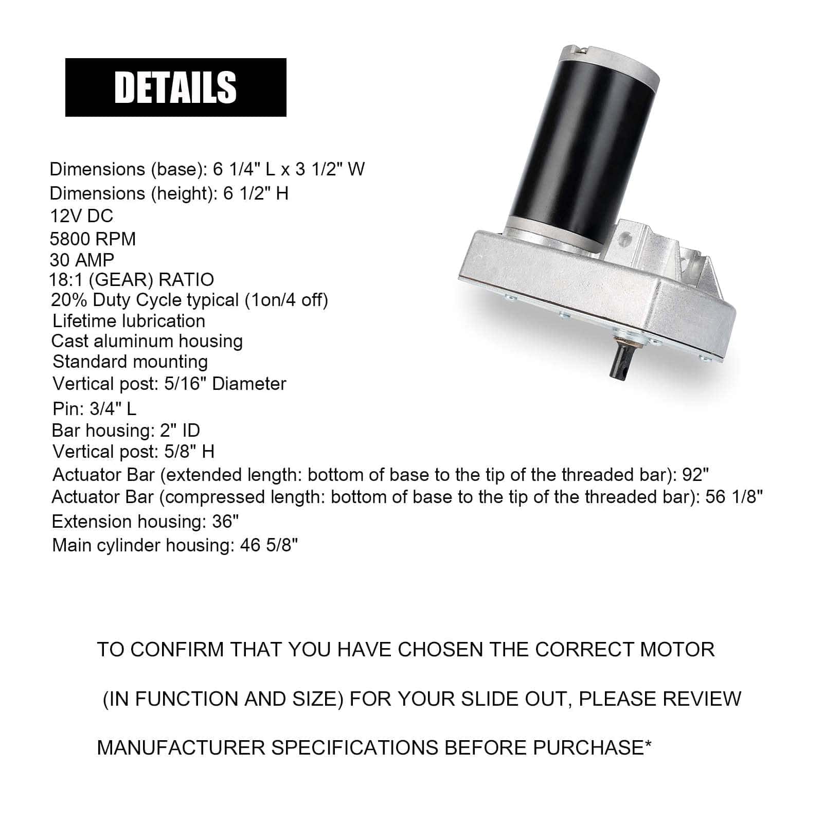 Descripción NÚMERO DE PARTE DE REPUESTO: M-8910, 132682, 168956, 295380, RP-785615, 131903 ESPECIFICACIONES: 12V DC 30 Amp 5800 RPM Relación 18:1 (ENGRANAJE)