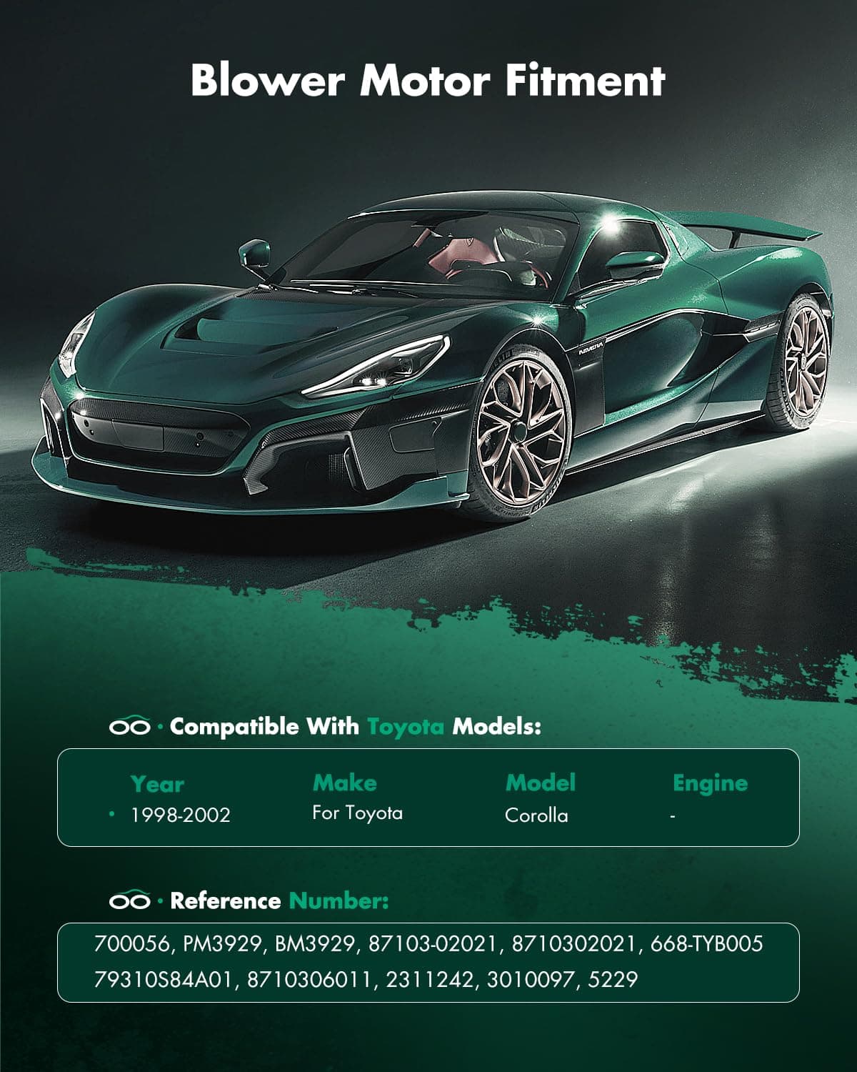 1. Compatibilidad: Motor del soplador de aire acondicionado para Toyota Corolla l4 1.8L 1998-2002.
