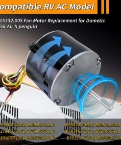 El motor del ventilador 3315332.005 es un repuesto de calidad OEM para los modelos de aire acondicionado Dometic Brisk Air II. Con un eje en forma de D, cuerpo del motor de 5-5/8″ de diámetro y 3 velocidades de RPM, este motor garantiza un rendimiento duradero y eficiente. Compatible con varios modelos de Dometic, este motor proporciona el flujo de aire necesario para mantener su RV fresco en cualquier entorno. Fabricado con materiales de alta calidad y diseño de ahorro de energía, este motor es una excelente opción para mejorar su sistema de aire acondicionado de RV.