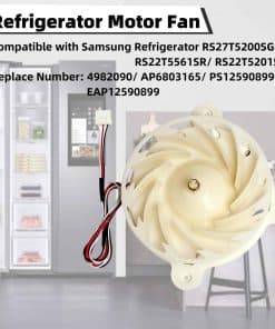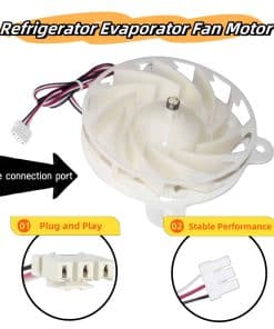 Motor del ventilador del evaporador del refrigerador LLYZFED, hecho de metal de alta calidad y plástico ABS. Reemplaza los números de parte DA31-00342A, PD00080451, EAP12590899, ARES2130RA, AP6803165, PS12590899, 4982090. Potencia: DC 12V, 0.35A, 4.2W. Velocidad: 1850 rpm. Perfecto para resolver problemas de sobrecalentamiento, ruido, envejecimiento del ventilador, congelación del congelador, etc. Se ajusta a varios modelos de refrigerador Samsung.