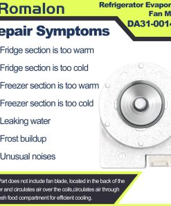 Velocidad: 2520 RPM, Potencia: 3.21 Watts, Amperaje: 0.27, Voltaje: 12 VAC. Funciona con los siguientes modelos: RFG238AABPXAA0000, RFG238AAPNXAA0000, RFG238AAWPXAA0000, RS267LBBPXAA0000, RS267TDBPXAA0000, RS263TDRSXAA, RFG298AABPXAA, RS265TDBP/XAA, RF23HCEDBBCAA0000, RF23HCEDBWWAA0000, RF26VABBPXAA0000, RF26VABPNXAA0000, RF26VACBPXAA0000, RF26VACPNXAA0000, RF26VACWPXAA0000, RF26XAEBPXAA, RF26XAEPNXAA, RF26XAEWPXAA, etc. Corrige los siguientes síntomas: La sección del refrigerador está demasiado caliente, la sección del refrigerador está demasiado fría, la sección del congelador está demasiado caliente, la sección del congelador está demasiado fría, agua goteando, acumulación de hielo, ruidos inusuales. Nota: Esto es solo una guía, ya que otros elementos pueden causar los mismos síntomas. Esta parte también se conoce como un motor soplador. Guarde de forma segura cualquier alimento que pueda deteriorarse mientras la energía está desconectada y desenchufe el refrigerador antes de instalar esta parte. Use guantes de trabajo para proteger sus manos.