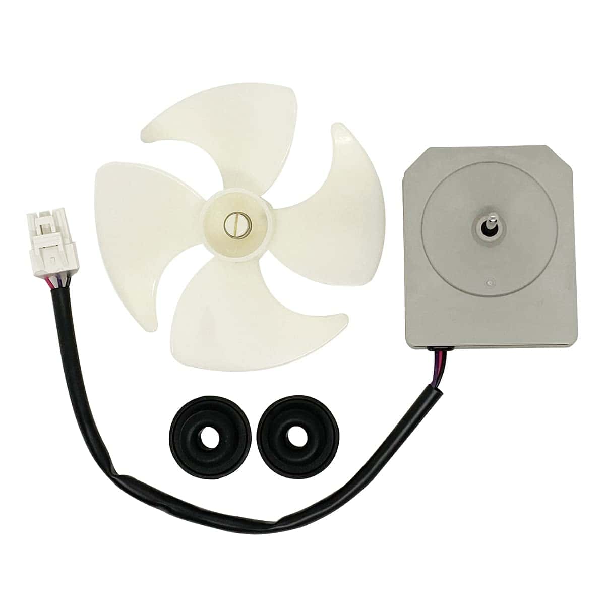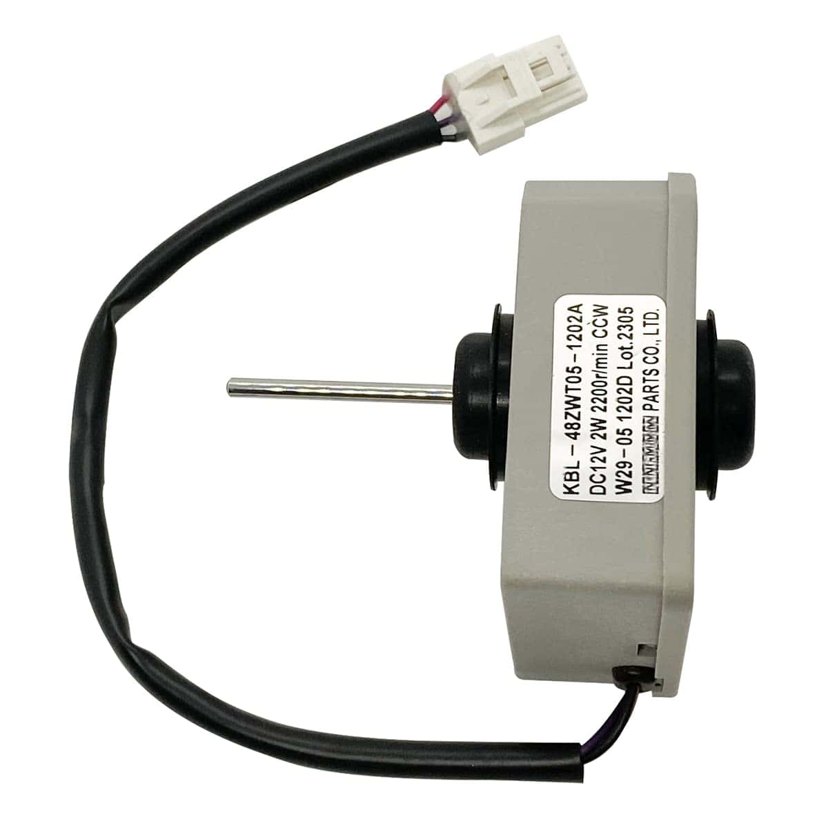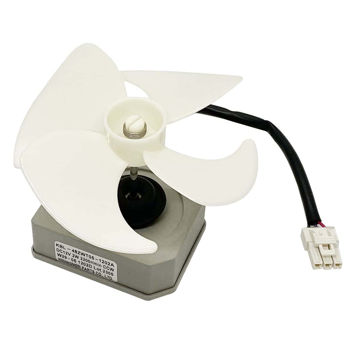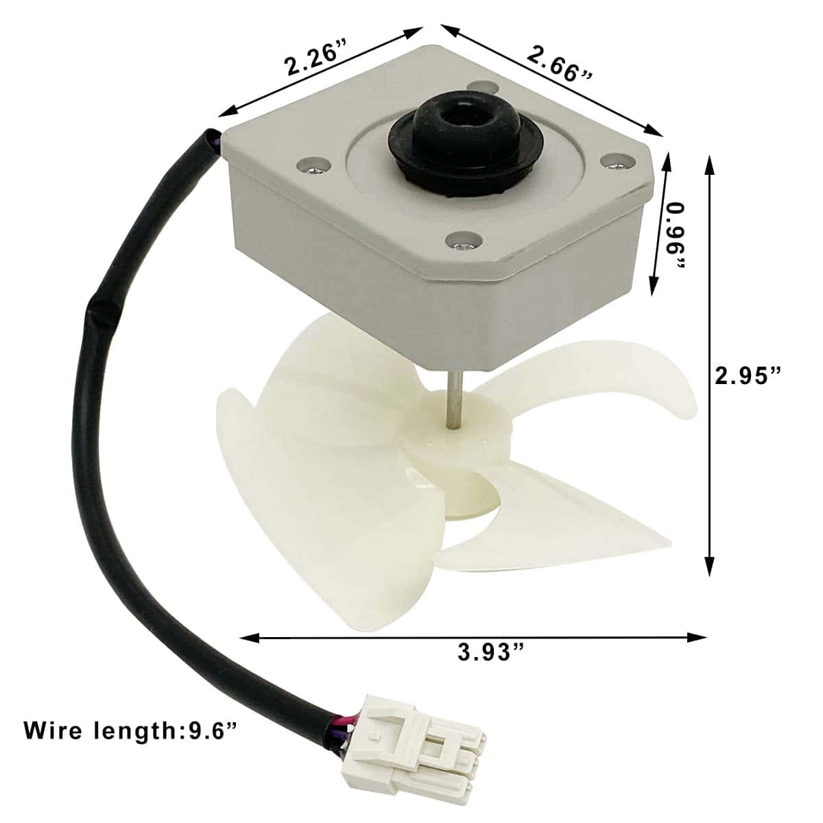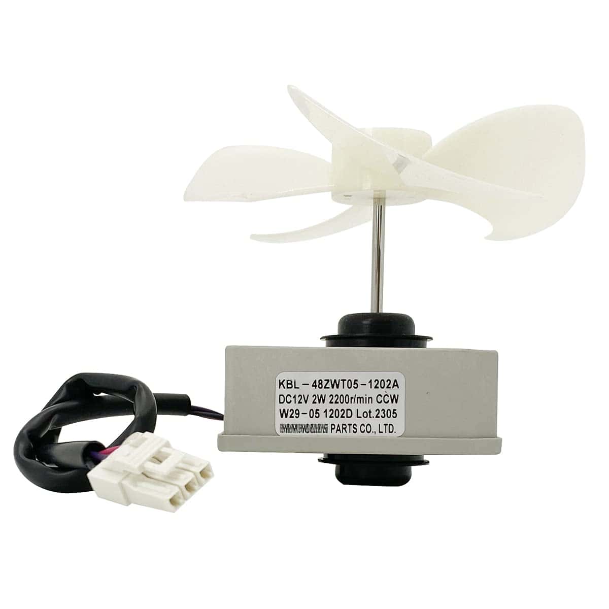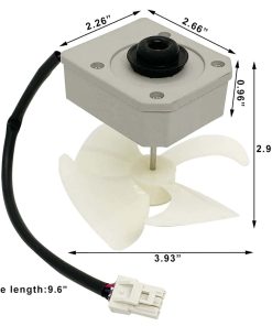 Especificaciones: Marca: JFQWLE Modelo: KBL-48ZWT05-1202A Voltaje: DC12V Potencia: 2W Velocidad: 2200r/min Rotación: CCW Pins: 3 Tamaño total: 3.93×3.93×2.95 pulgadas Tamaño del motor: 2.66×2.26×2.95 pulgadas Longitud del eje del motor: 1.6″ Diámetro del eje del motor: 1/8″ Diámetro del ventilador: 3.93″ Diámetro del agujero de instalación del ventilador: 0.12″ Longitud del cable: 9.6″ Compatible con Frigidaire, Magic Chef, Omar, TCL Refrigerador con algunos modelos (no todos), por ejemplo Frigidaire(FFET1222UW FFET1222UB FFET1222UV FFET1022UV FFET1022UB FFET1022UW), Magic Chef(HMDR1000BE HMDR1000WE HMDR1000ST); Incluido en el paquete: 1x Motor de reemplazo del refrigerador; 1x Aspa del ventilador de 4 hojas; 2x Almohadillas de goma.