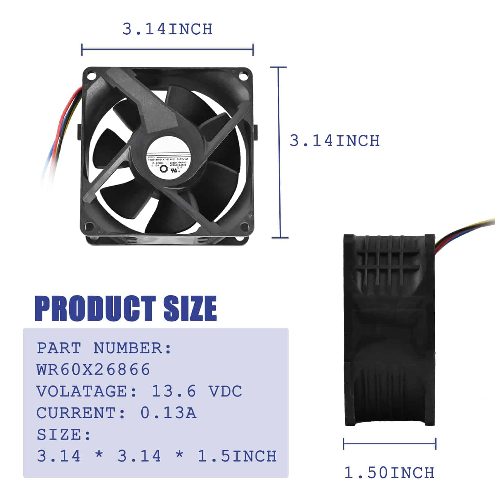 Part Number WR60X26866 reemplaza a AP6278228 WR60X10341, WR60X10356, WR60X24303, WR60X26030, WR60X26033, V80E14MS2A3-57A611. Se adapta al motor del ventilador de alimentos frescos de GE refrigerador WR60X26866.