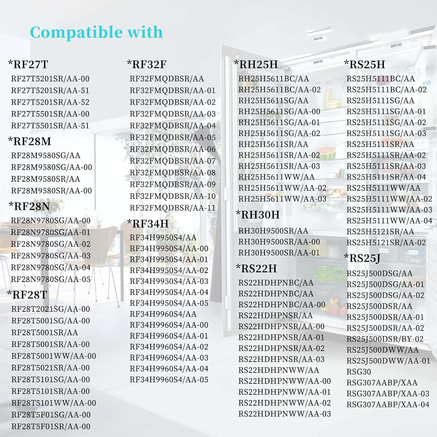 Compatible con algunos modelos de refrigerador Samsung: RF23J9011SR, RF23J9011SR, RF220NCTASR, RS25H5111SG, RS25H5111SG, RF34H9960S4, RF28K9380SG, RF34H9950S4, RF32FMQDBSR, RH25H5611SG, RF28K9580SG, RF22K9381SR, RF22K9381SR, RH25H5611BC, RF28T5001SR, RF220NCTABC, etc. Por favor, consulte la información de ajuste del número de modelo en la parte inferior de esta página antes de realizar su pedido para esta pieza.