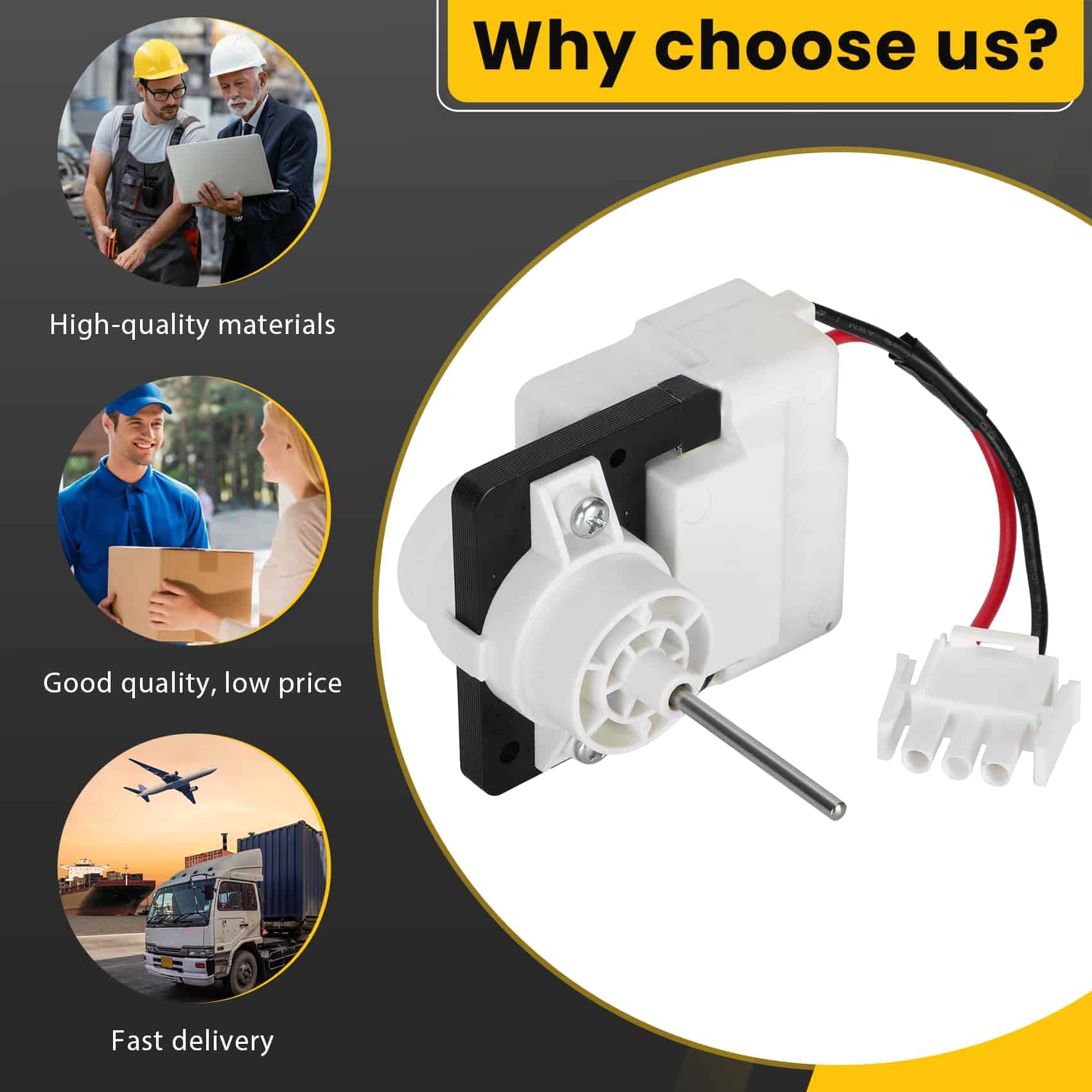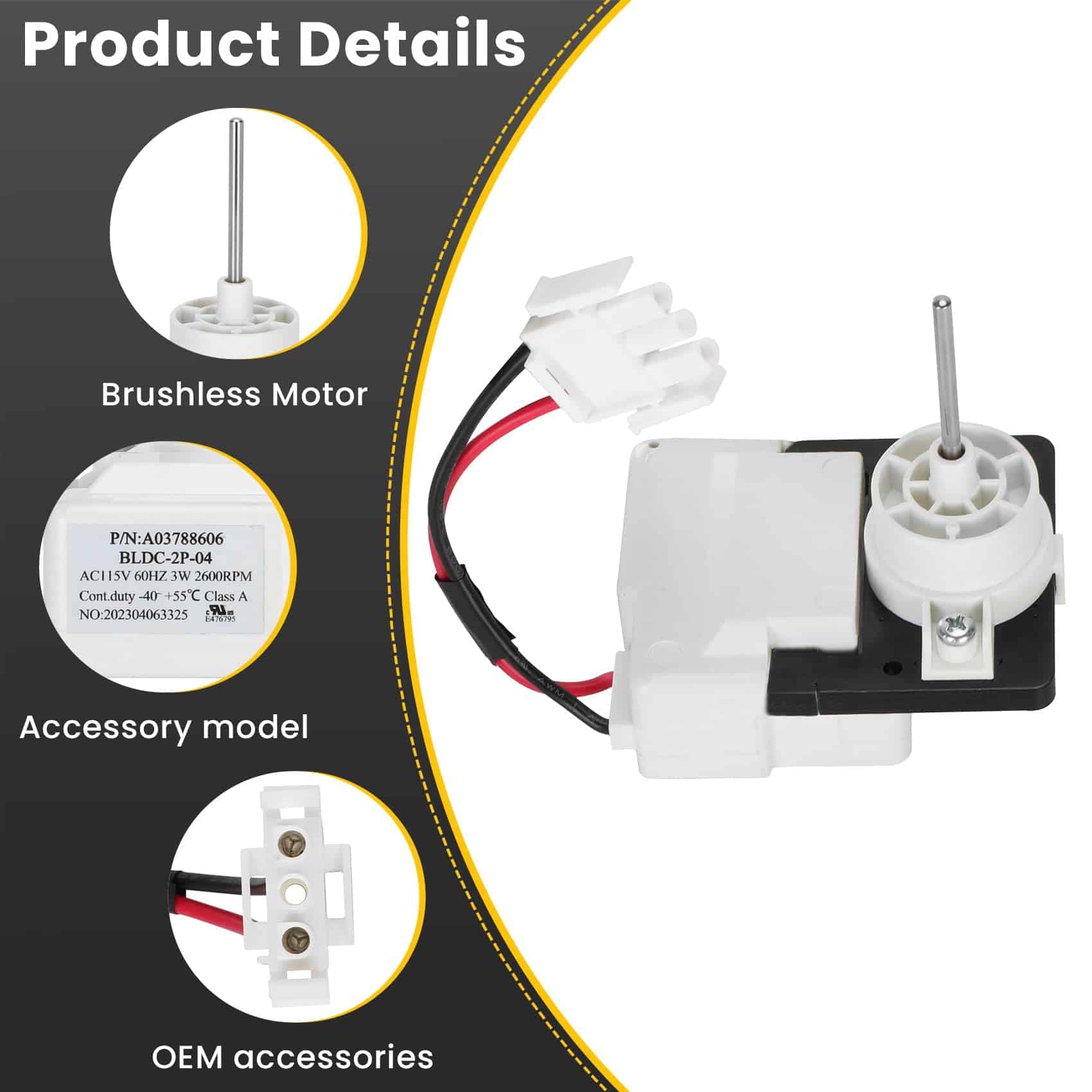 Motor del ventilador evaporador (OEM) compatible con frigidaire, White Westinghouse, Número de Pieza: PS12724118, EAP12724118, etc – Garantía de 1 año. Este motor del ventilador es un accesorio OEM y ha sido completamente probado antes de salir de fábrica para garantizar que el accesorio pueda ser utilizado por mucho tiempo. Nuestros motores de ventilador evaporador de refrigerador son compatibles con refrigeradores frigidaire y White Westinghouse. Si no está seguro de si su refrigerador es compatible, puede decirnos y lo verificaremos por usted. Fácil de reemplazar, y después del reemplazo, puede resolver el problema de la temperatura anormal del refrigerador y hacer que su refrigerador se enfríe nuevamente. Aquí, proporcionamos productos de alta calidad y, lo que es más importante, nuestro sincero servicio postventa. No importa cuál sea su problema, responderemos de manera pronta y haremos todo lo posible para resolverlo. Nuestro equipo está formado por personal de servicio al cliente profesional que escuchará pacientemente sus inquietudes y proporcionará soluciones efectivas. Esperamos que a través de nuestros servicios, pueda sentir nuestra sinceridad e intención para que pueda comprar con confianza y estar satisfecho con su consumo.