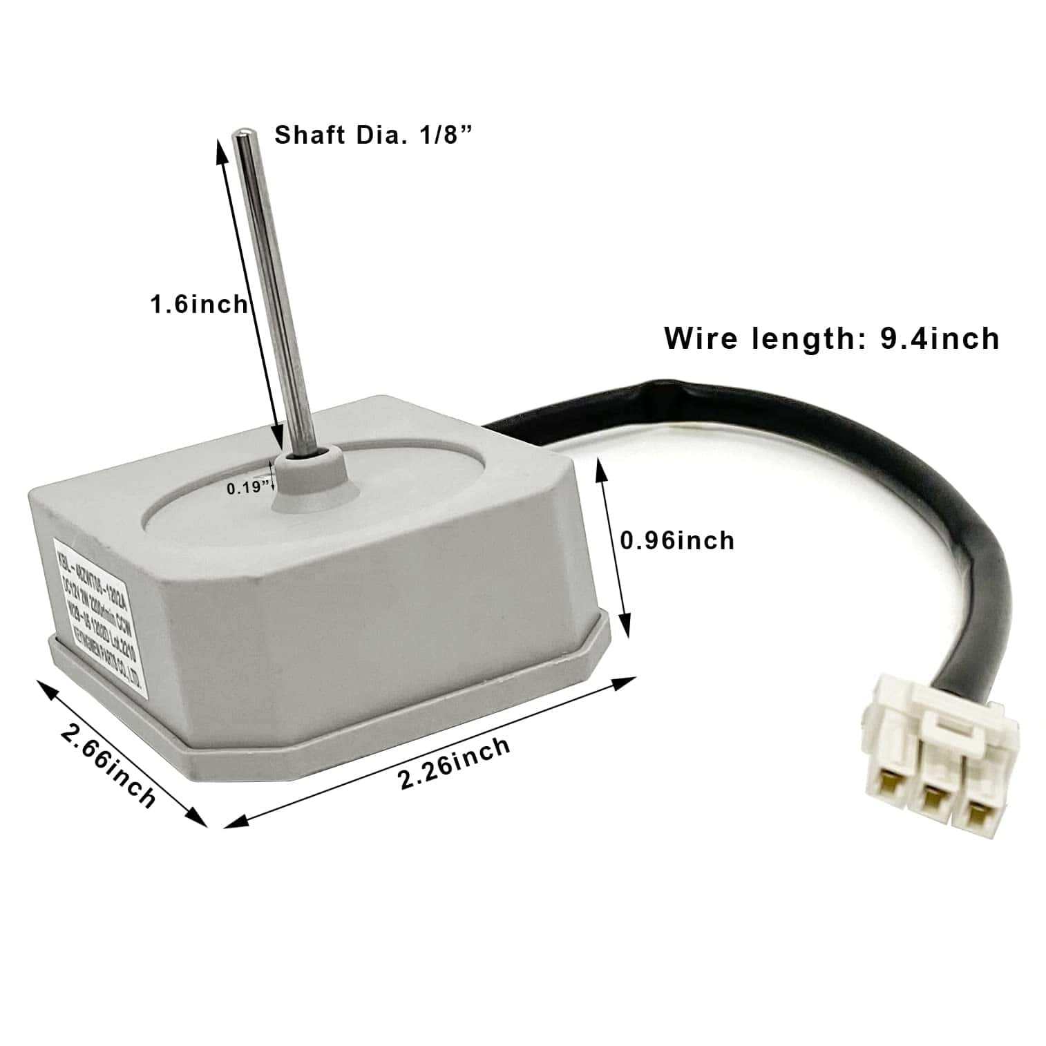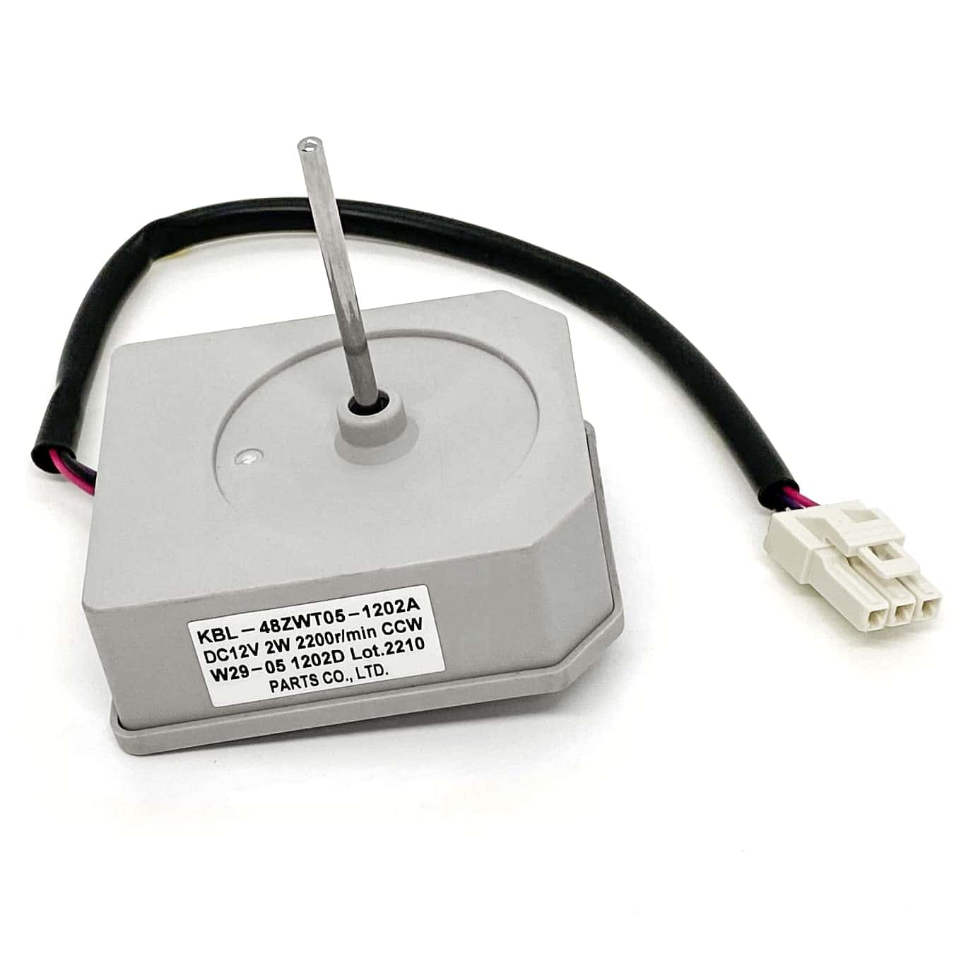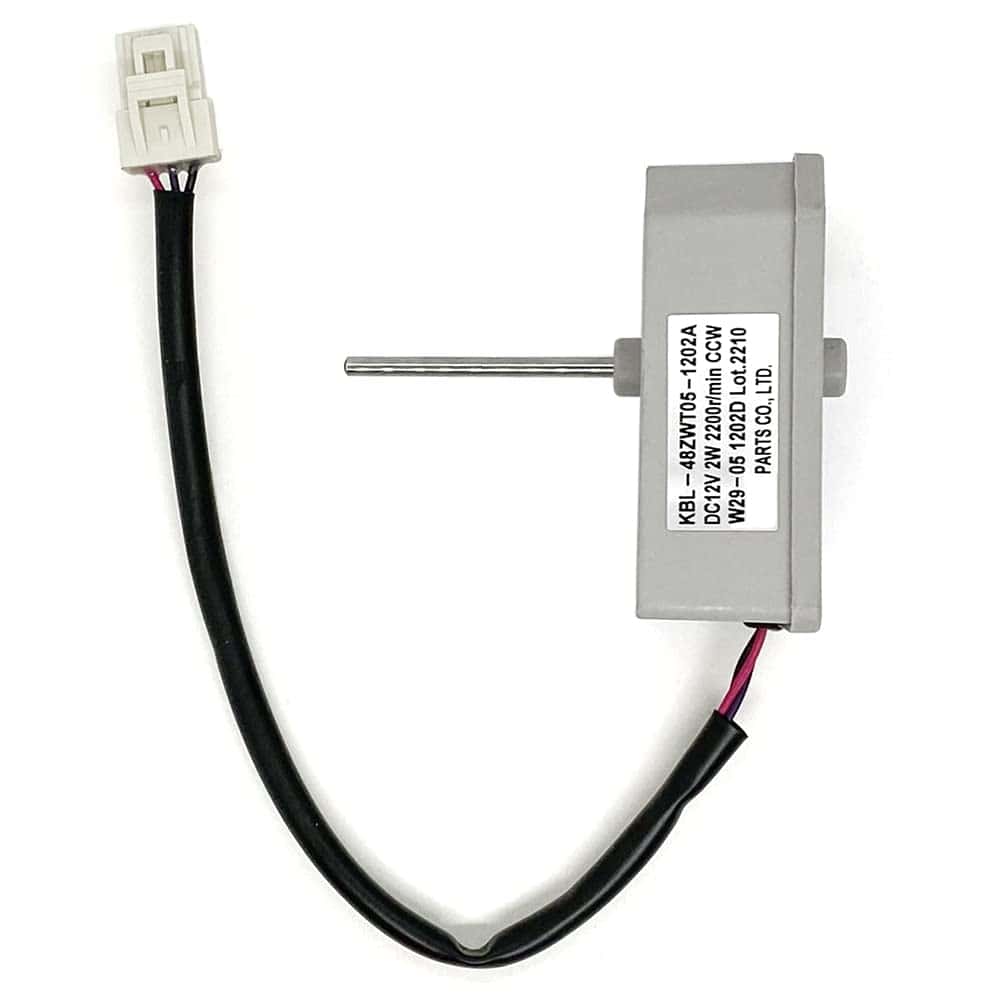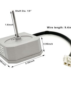 Especificaciones: Marca: XFYBZN Modelo: KBL-48ZWT05-1202A Voltaje: DC12V Potencia: 2W Velocidad: 2200r/min Rotación: CCW Pines: 3 Tamaño total del motor: 2.26×2.66×2.95 pulgadas Longitud del eje del motor: 1.6 pulgadas Diámetro del eje del motor: 1/8 pulgadas Longitud del cable: 9.64 pulgadas Compatible con algunos modelos de refrigeradores Frigidaire, Magic Chef, Omar, TCL (no todos). Fácil instalación. Contacta con nosotros si tienes alguna duda sobre la compatibilidad del producto con tu modelo antes de comprar.