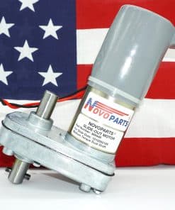Motor RV para deslizar Fácil de instalar. Nuevo motor de engranaje de eje paralelo de imán permanente. Carcasa de engranaje de aluminio fundido y tapa final del motor con marco de motor de acero. 12V DC freno electromecánico en la parte trasera del motor con palanca de liberación manual. Número de parte: 368446, 520819, 1010000188, 130-1305. El pasador en el eje está incluido. ESPECIFICACIONES: Velocidad 9 RPM @ 850 in-lbs, 17 amperios 12 RPM @ 400 in-lbs, 9,5 amperios 14 RPM (sin carga) Voltaje 12 DC Par 850 in-lbs Par de retención 500 in-lbs. Rotación reversible. Funcionamiento intermitente.